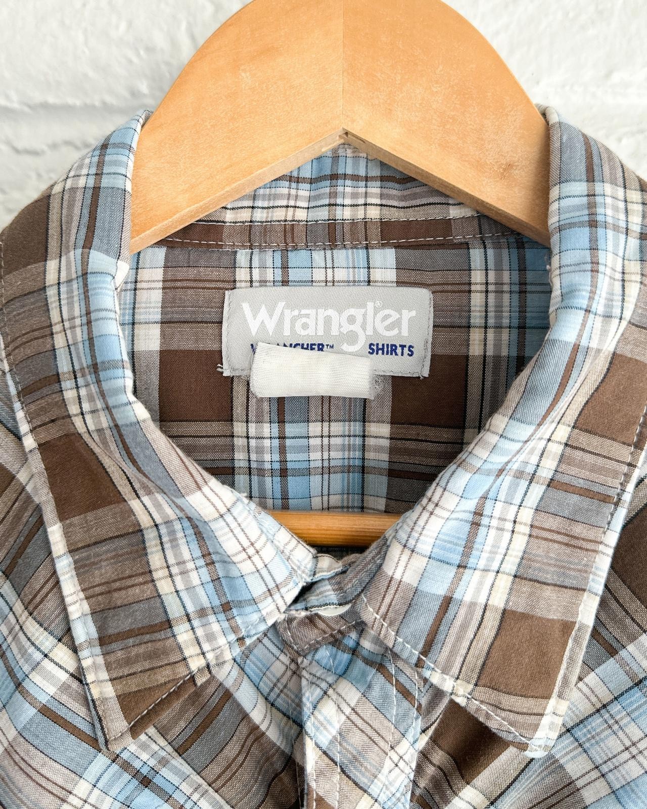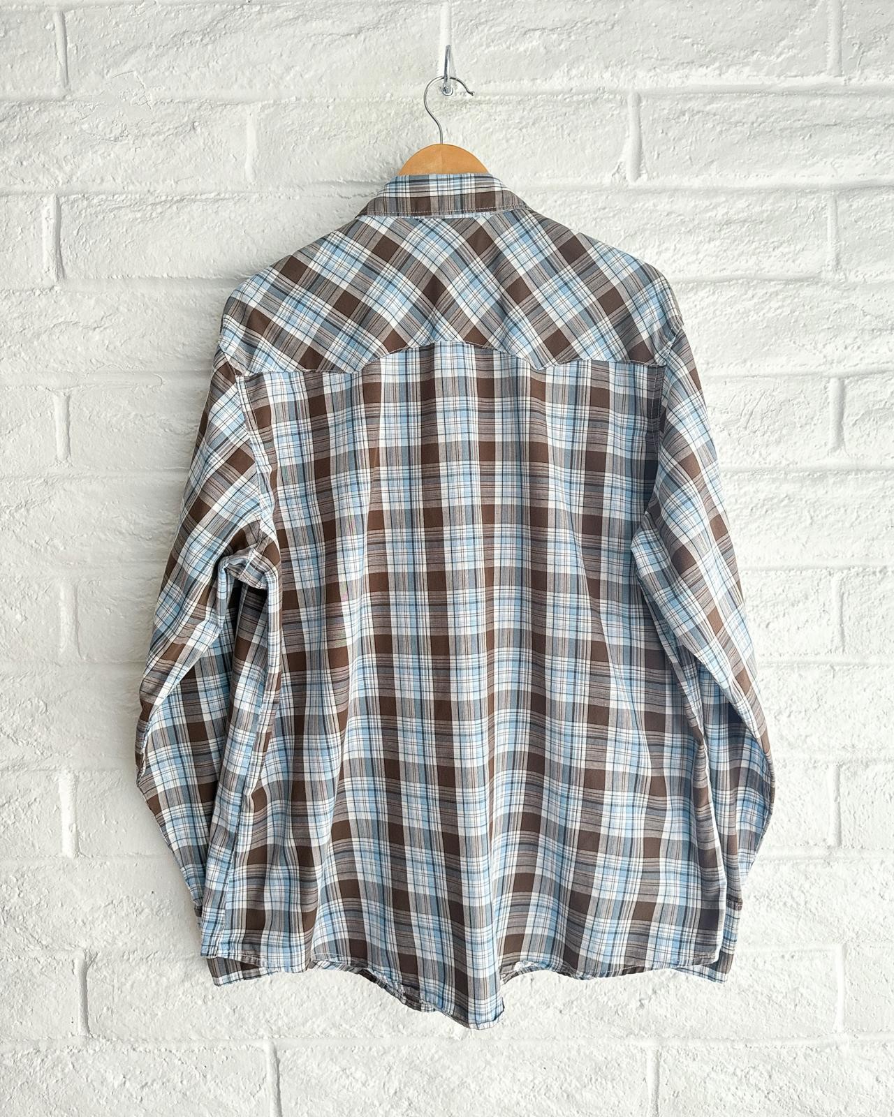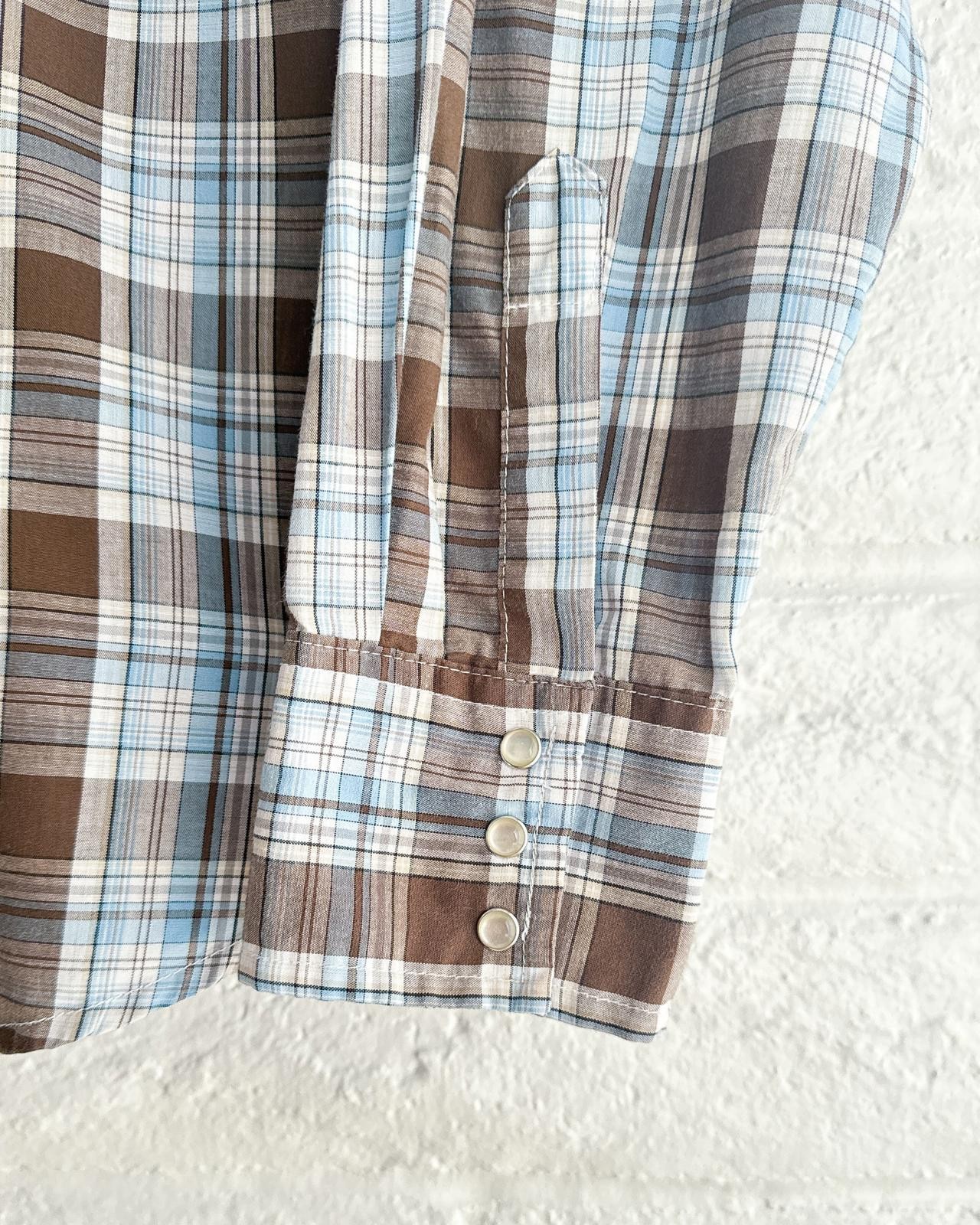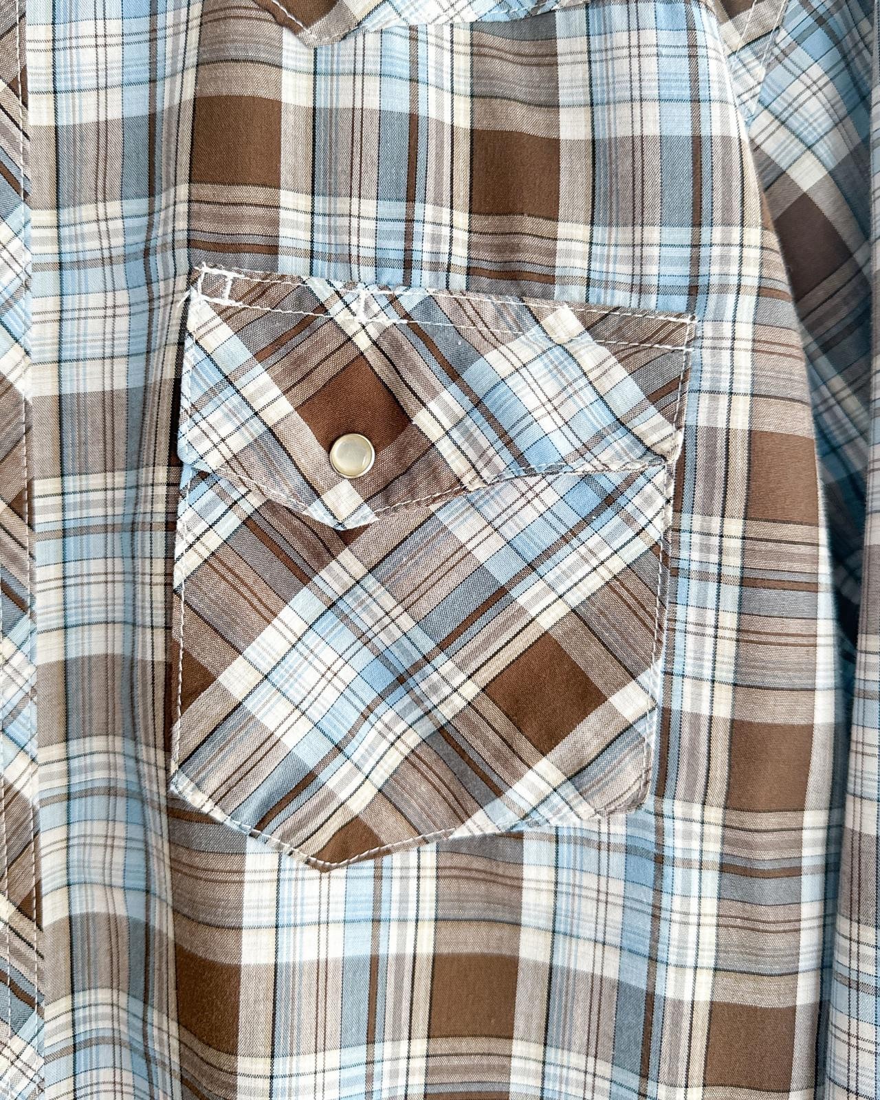 как выглядит Vintage 90s Wrangler Plaid Western Shirt Long Sleeve Pearl Snap Men
