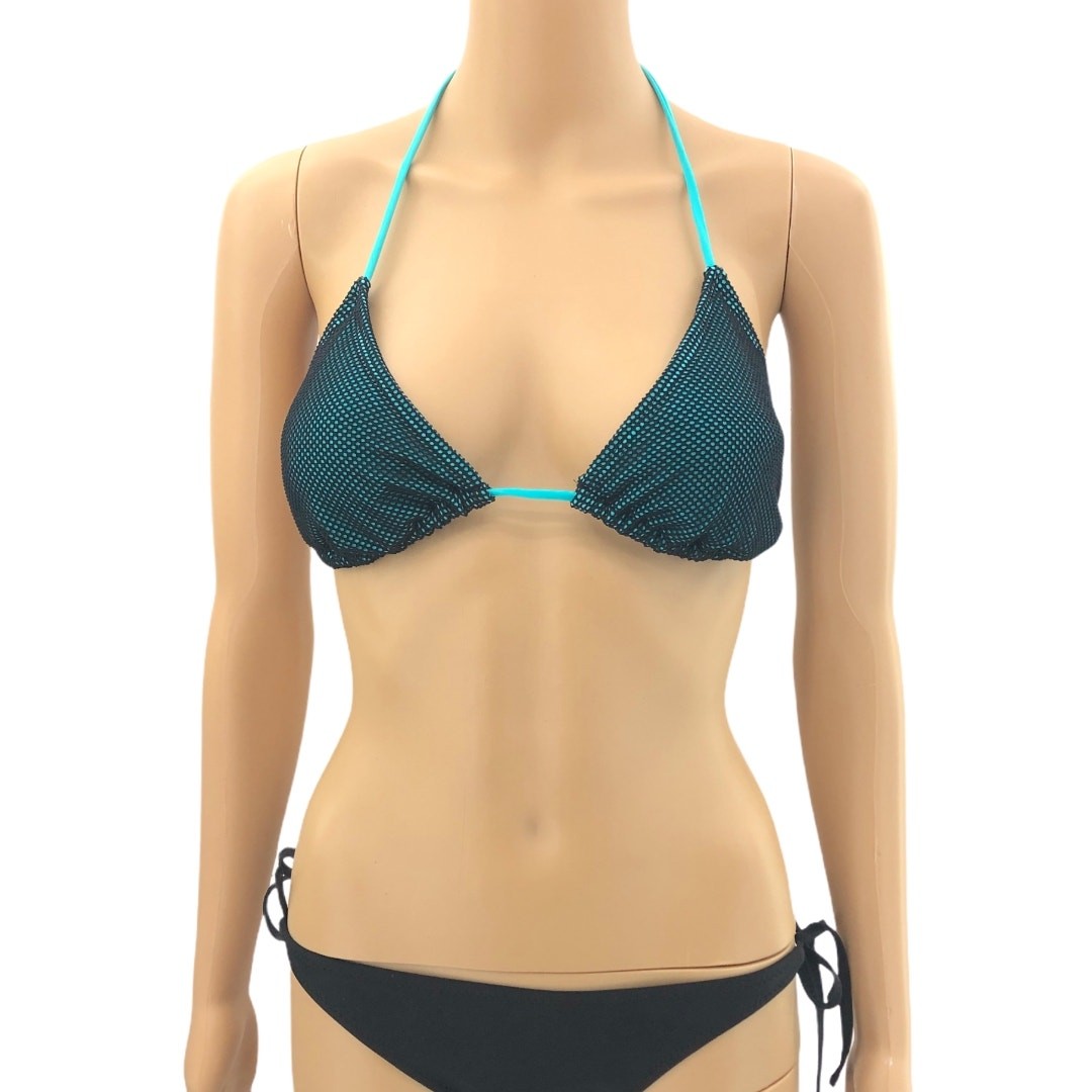 как выглядит No Boundaries LARGE Juniors Blue Drawstring Padded Bikini Top Swimsuit Swimwear фото