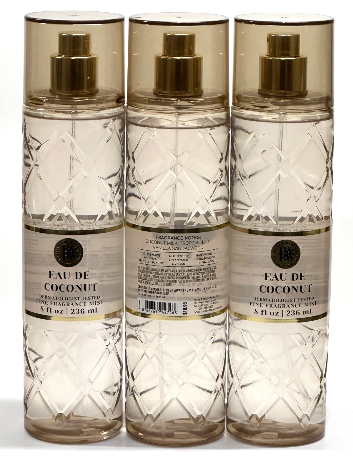 3 BATH BODY WORKS EAU DE COCONUT WOMEN FINE FRAGRANCE MIST BODY SPRAY 8 FL OZ