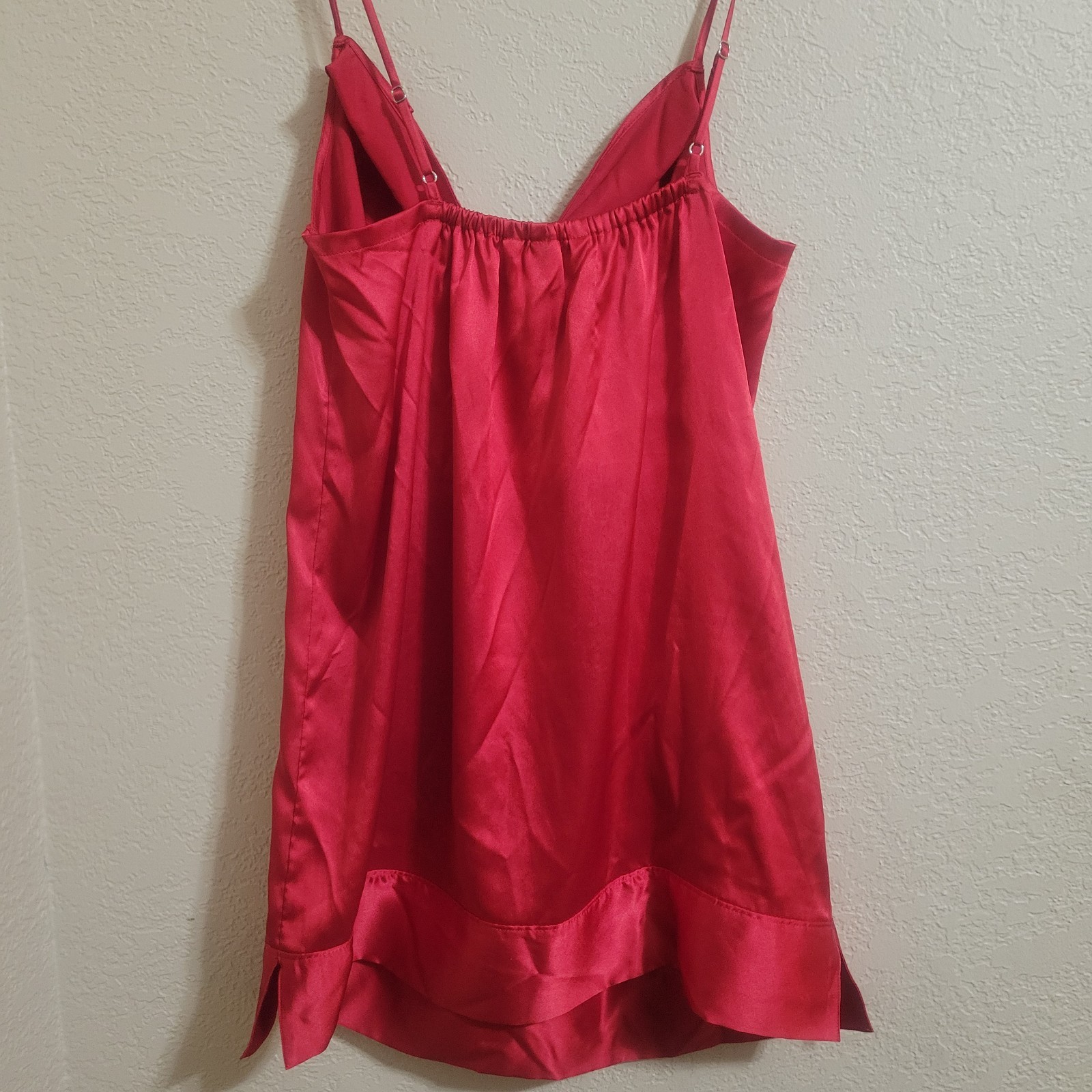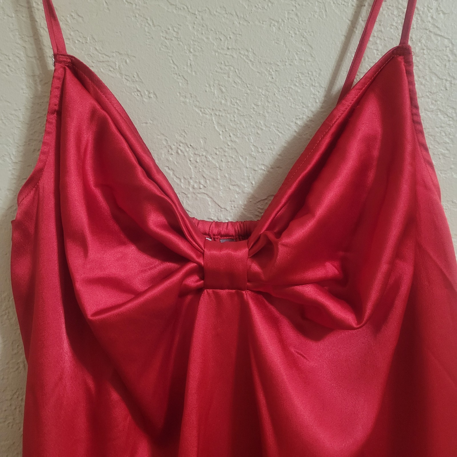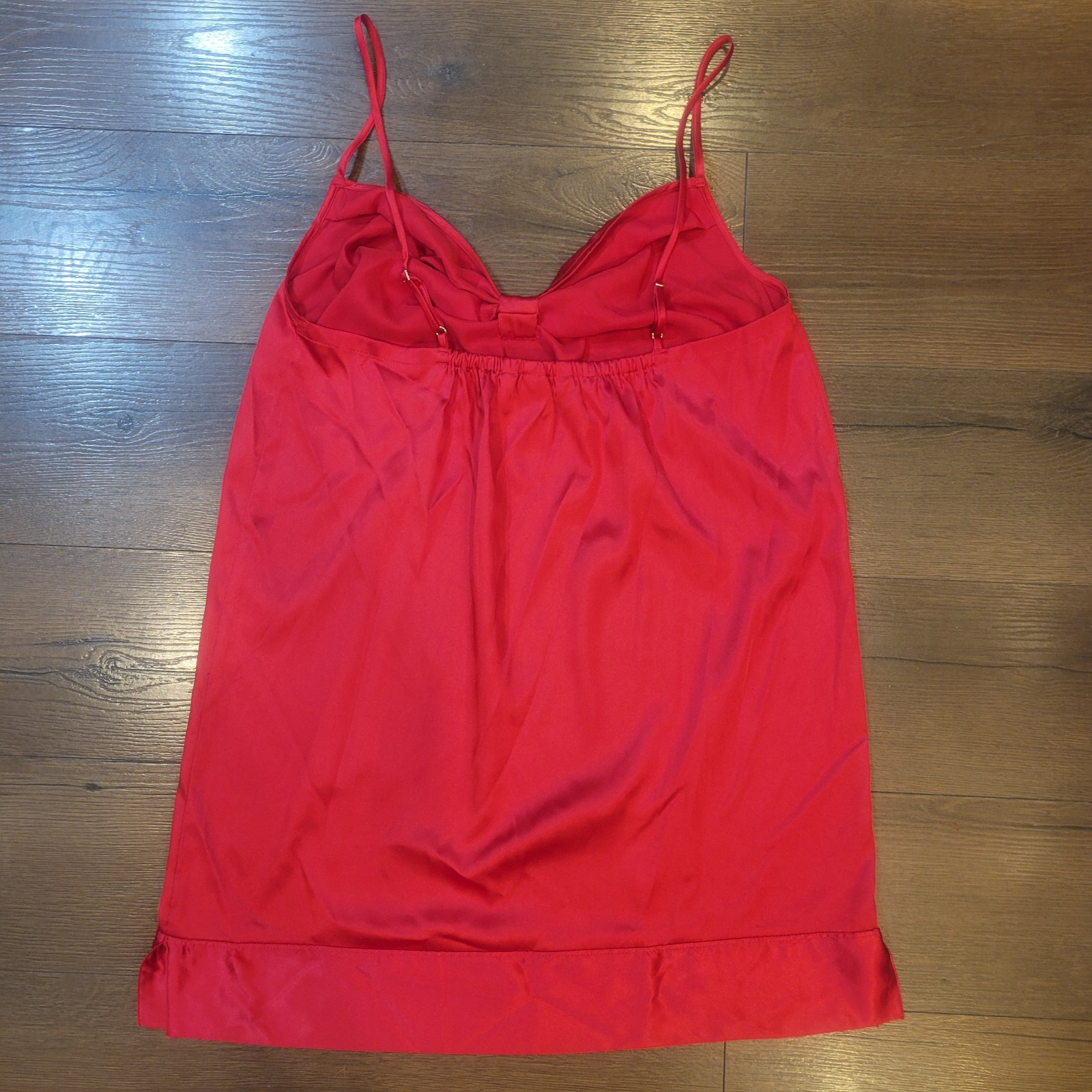 как выглядит Vintage Victoria s Secret Satin Slip Dress M Red Bow Front Chemise 2009 Lingerie фото