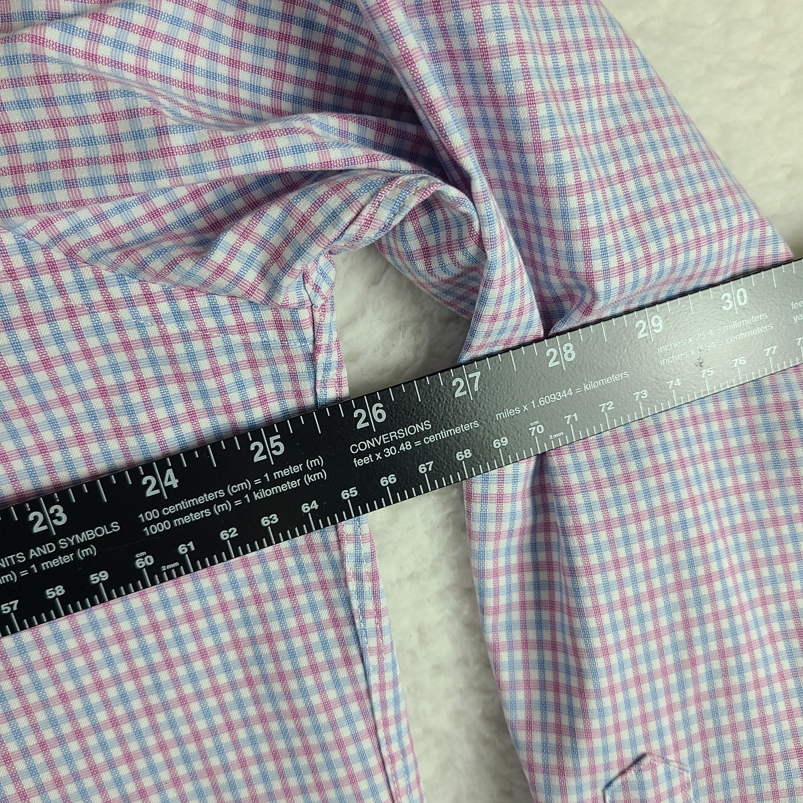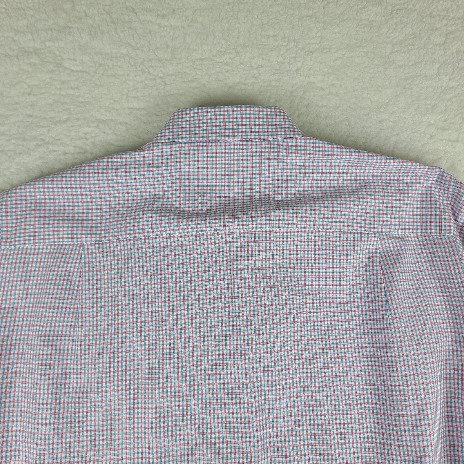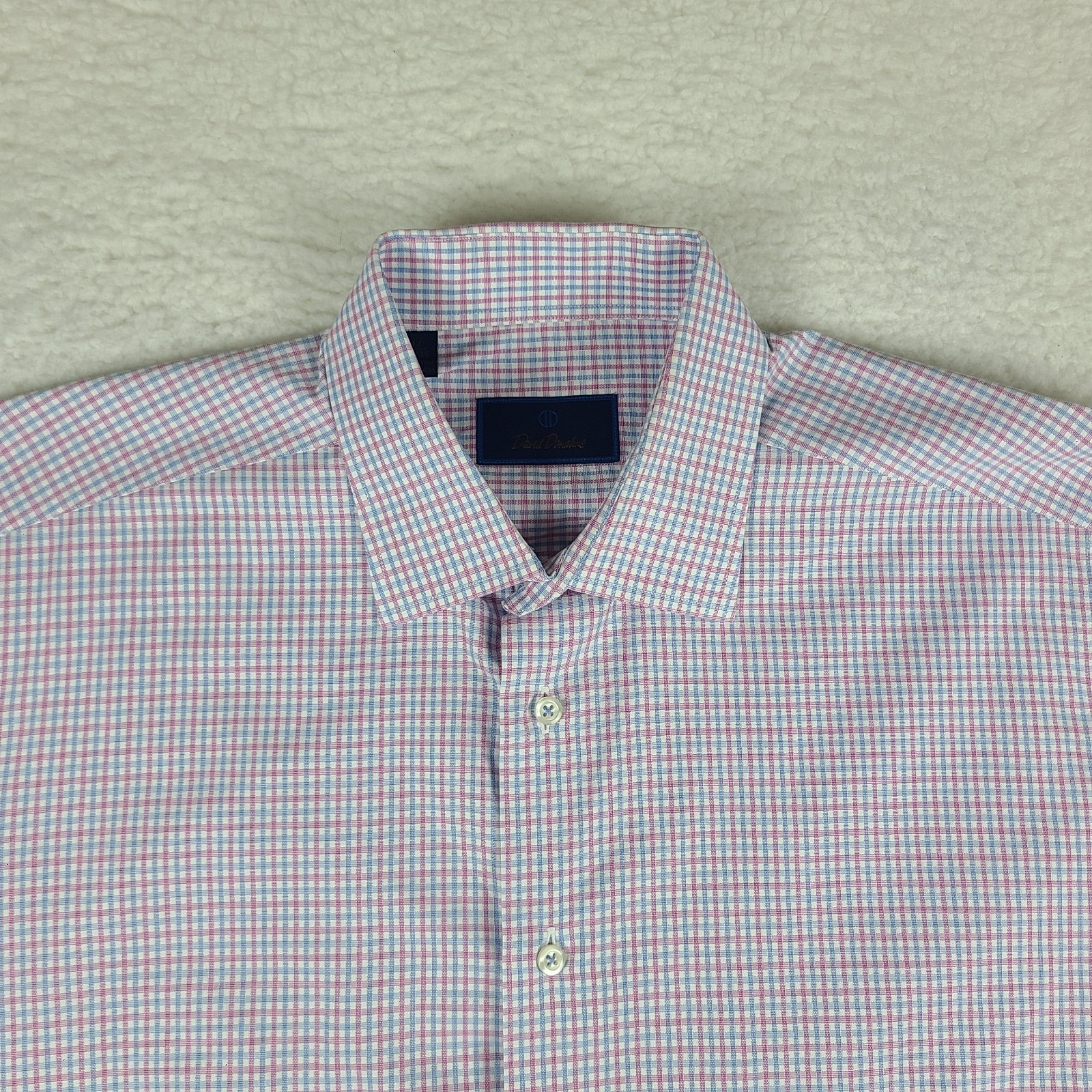 как выглядит David Donahue Dress Shirt Mens 17 34/35 Blue Purple Check 100 Cotton Button Up фото
