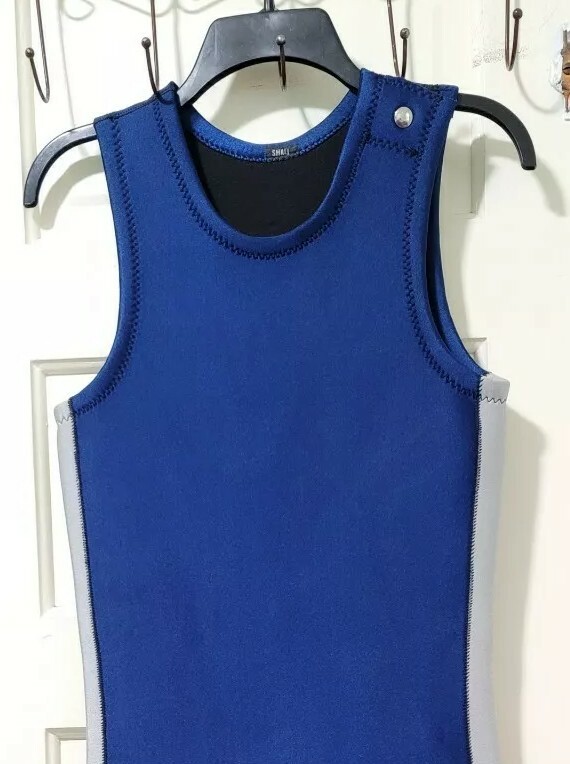 как выглядит Mens Ski Warm Neoprene Body Wetsuit Tank Top Shorts Bottom Small Blue Gray фото