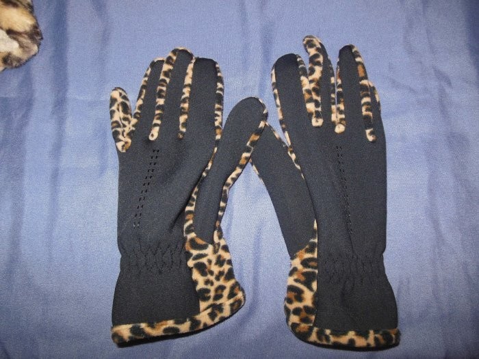 Ladies Cold Weather Accessory Lot FauxFur Leopard Ear Wrap 2Pair Gloves