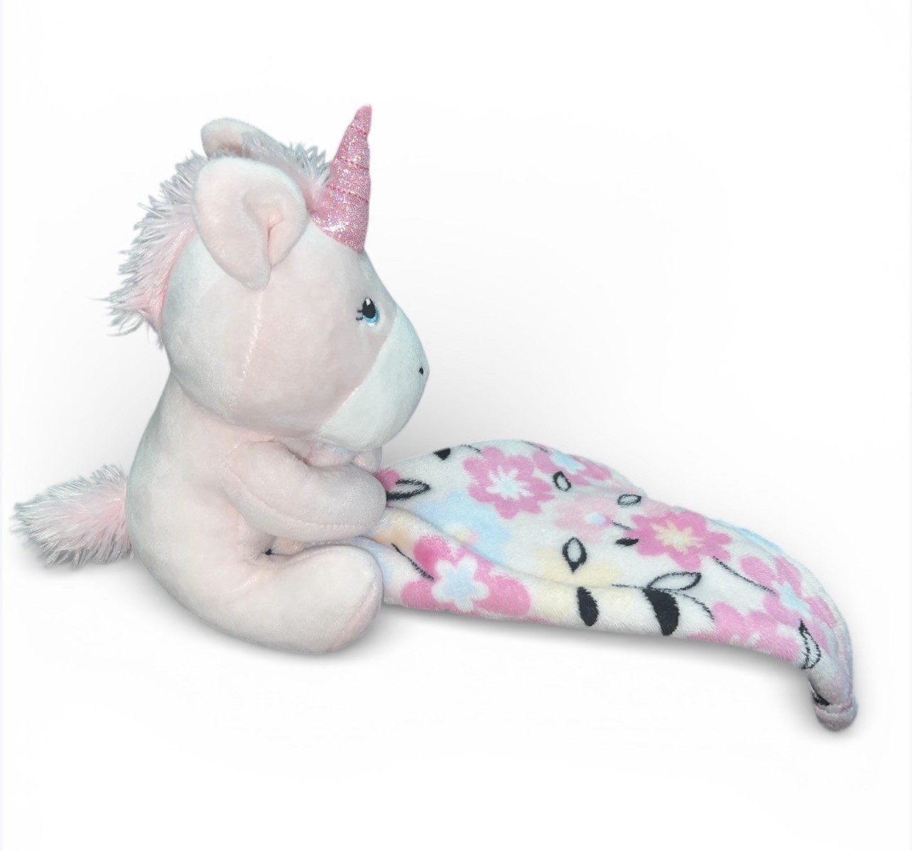 Unicorn Lovey Plush Security Blanket Pink Stuffed Toy Floral Little Beginnings
