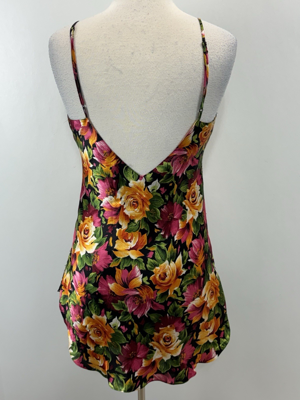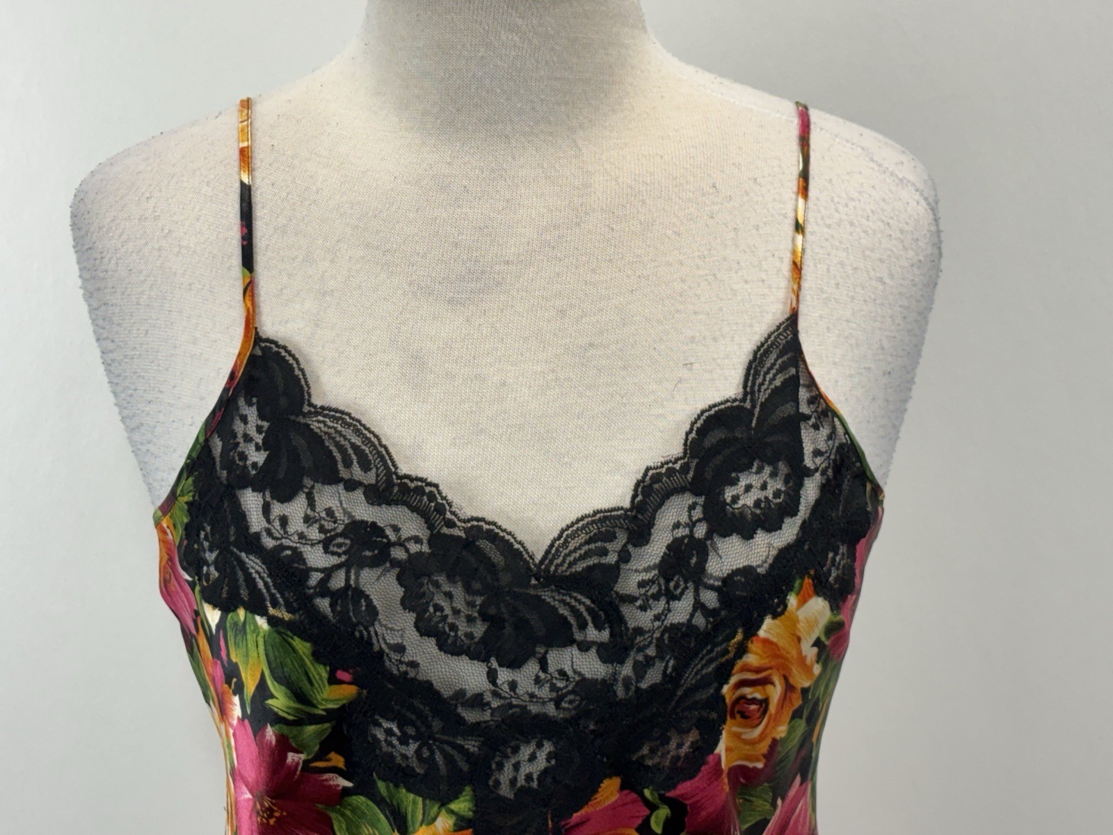Vtg Victorias Secret Floral Satin Nighty Slip Gown Womens M Lace Gold Label 90s