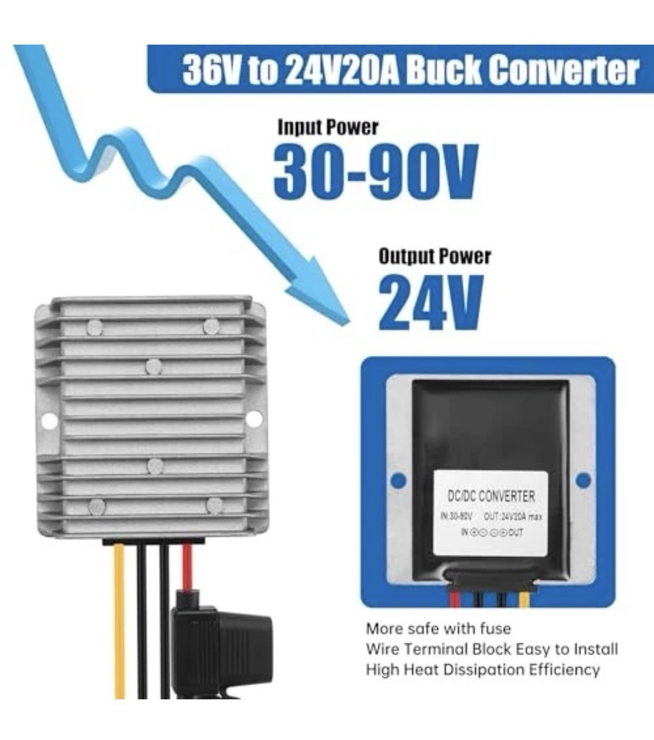 30-90V to 24V 20A 480W DC-DC Buck Converter Voltage Grey-DC 30-90V to 24V20A