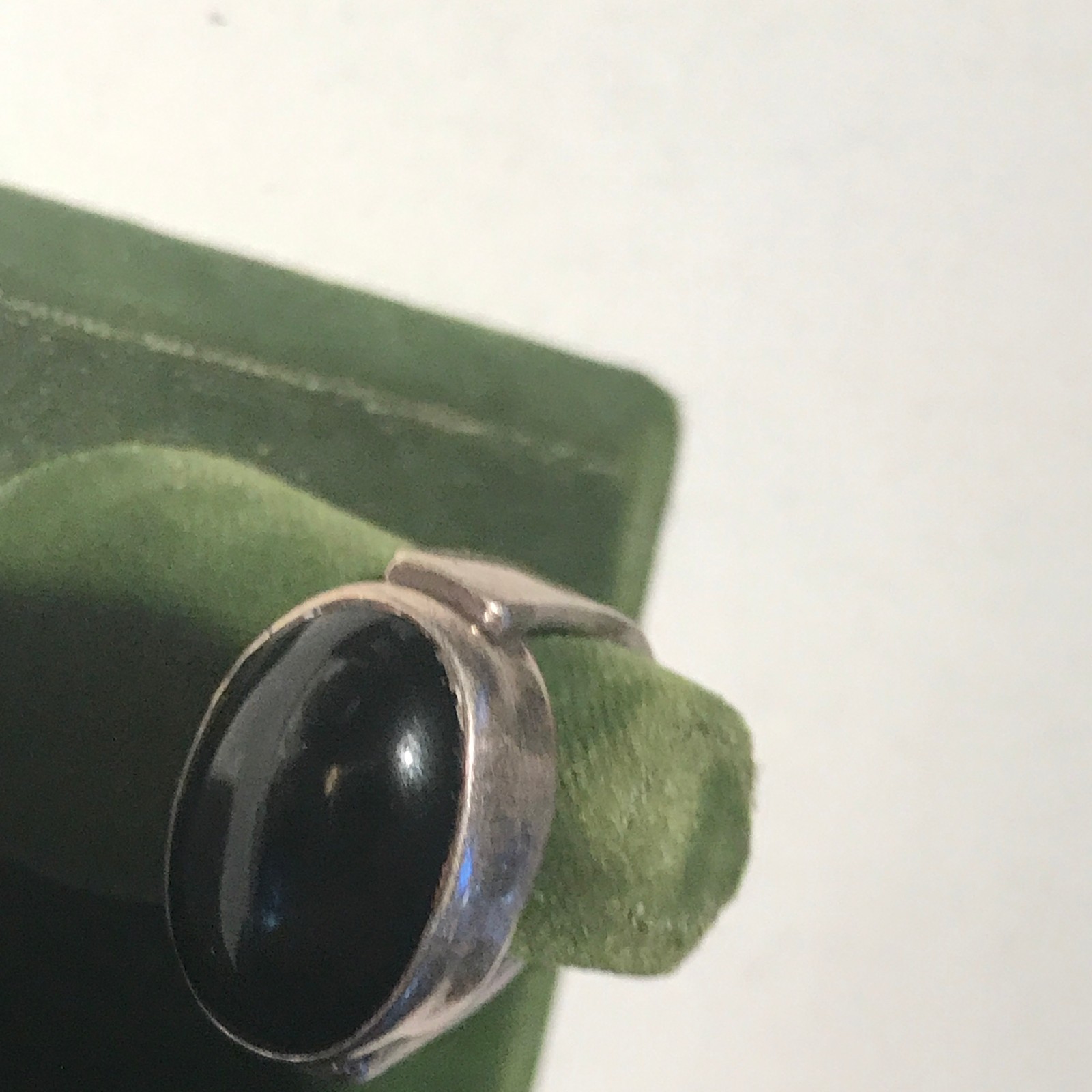 Vintage Mexican Sterling Silver Ring Polished Jade Size 5 NOS NOI