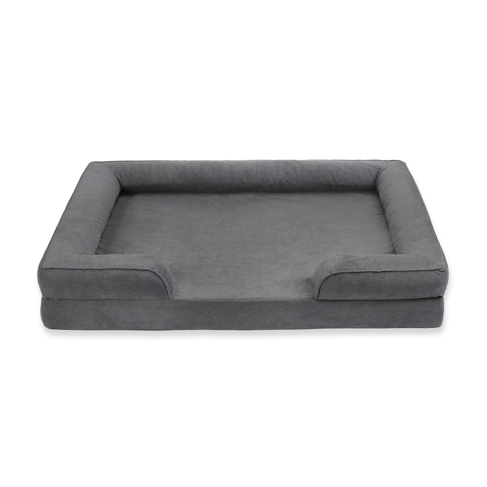 Brand New Inbox - Small Gray Corduroy Orthopedic Dog Bed with Bolster