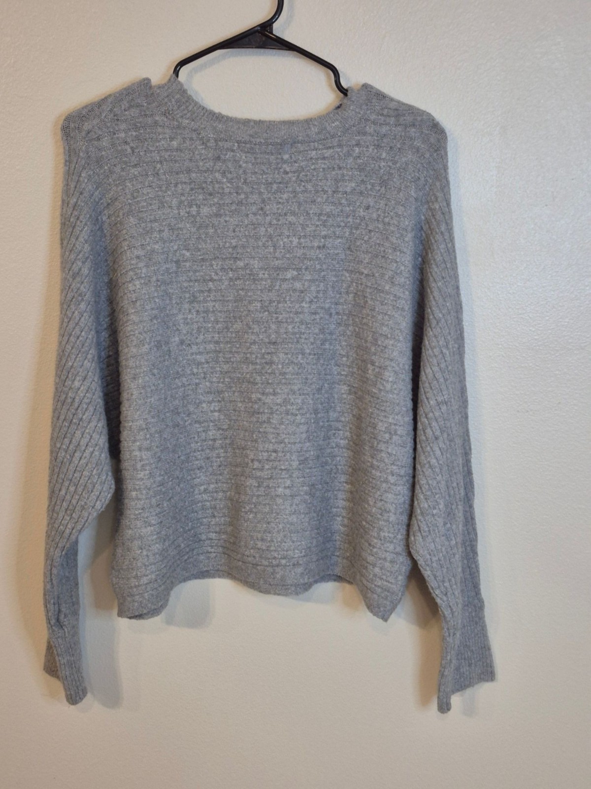 как выглядит Cozy Gray Knit Sweater By Pink Rose With Ribbed Sleeves Crew Neck - Size M фото