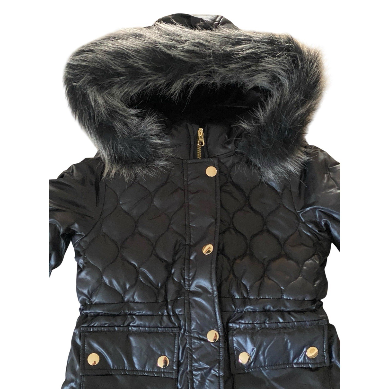 London Fog - Girls Quilted Puffer Parka S/4 - Faux Fur Hood Warm Coat
