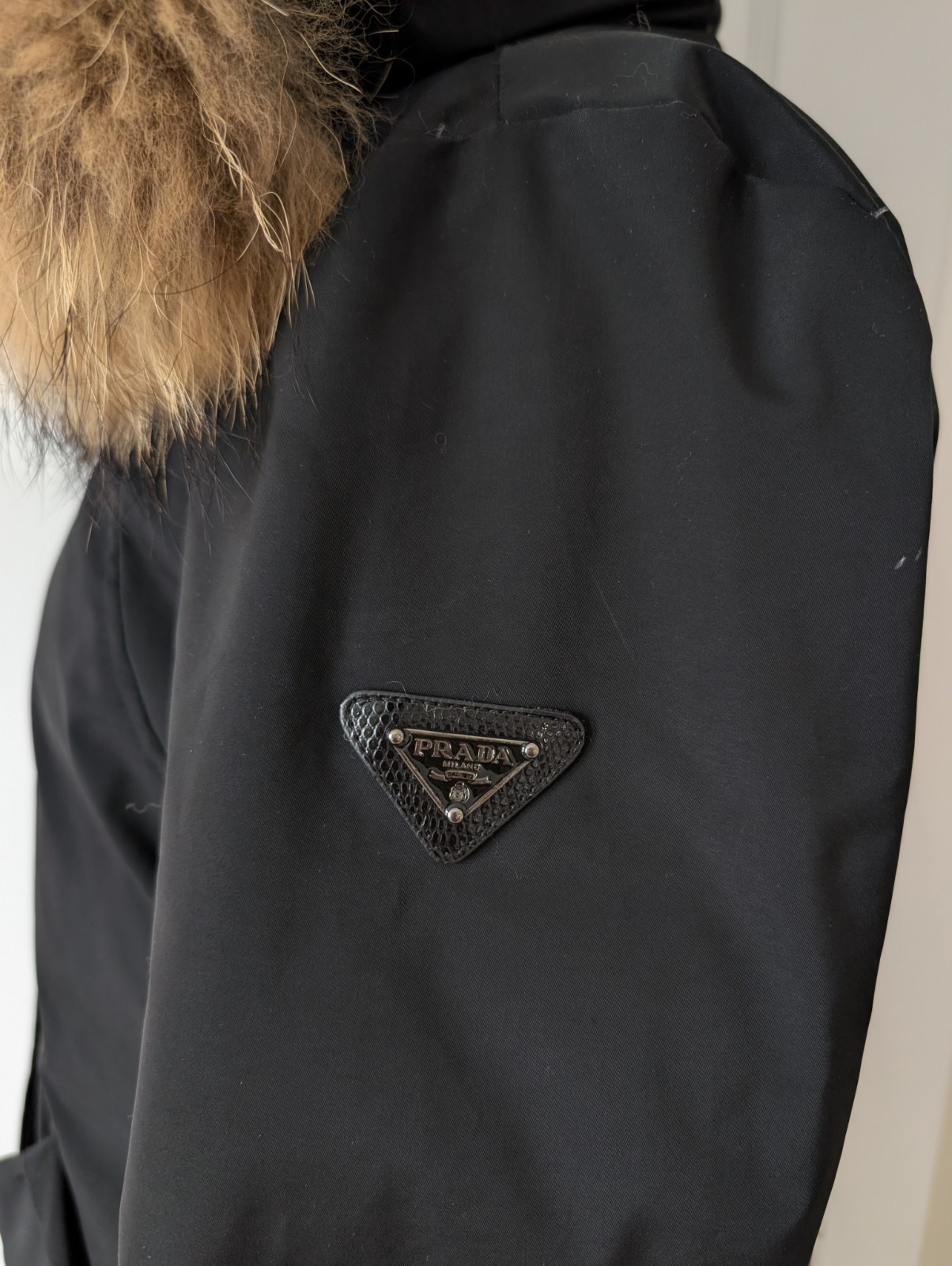 Women's Prada Down Parka Jacket With Fur Hood Size 40
