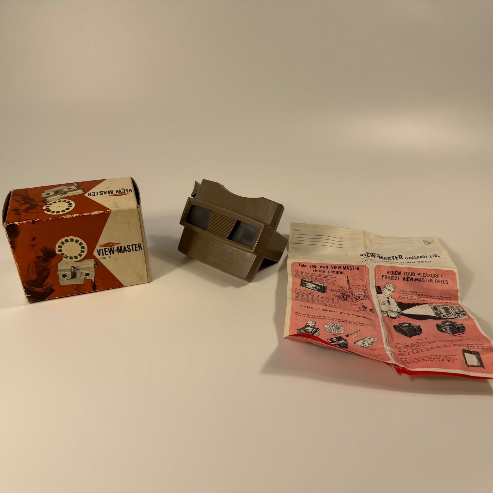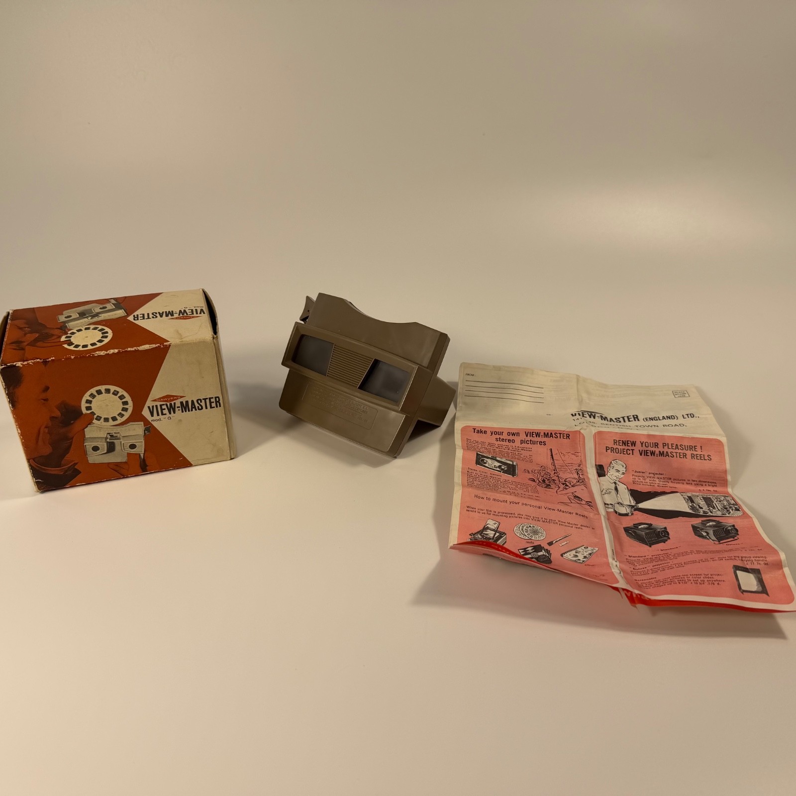 View-Master 3-D Viewer Model G Tan/Beige W Box Instructions