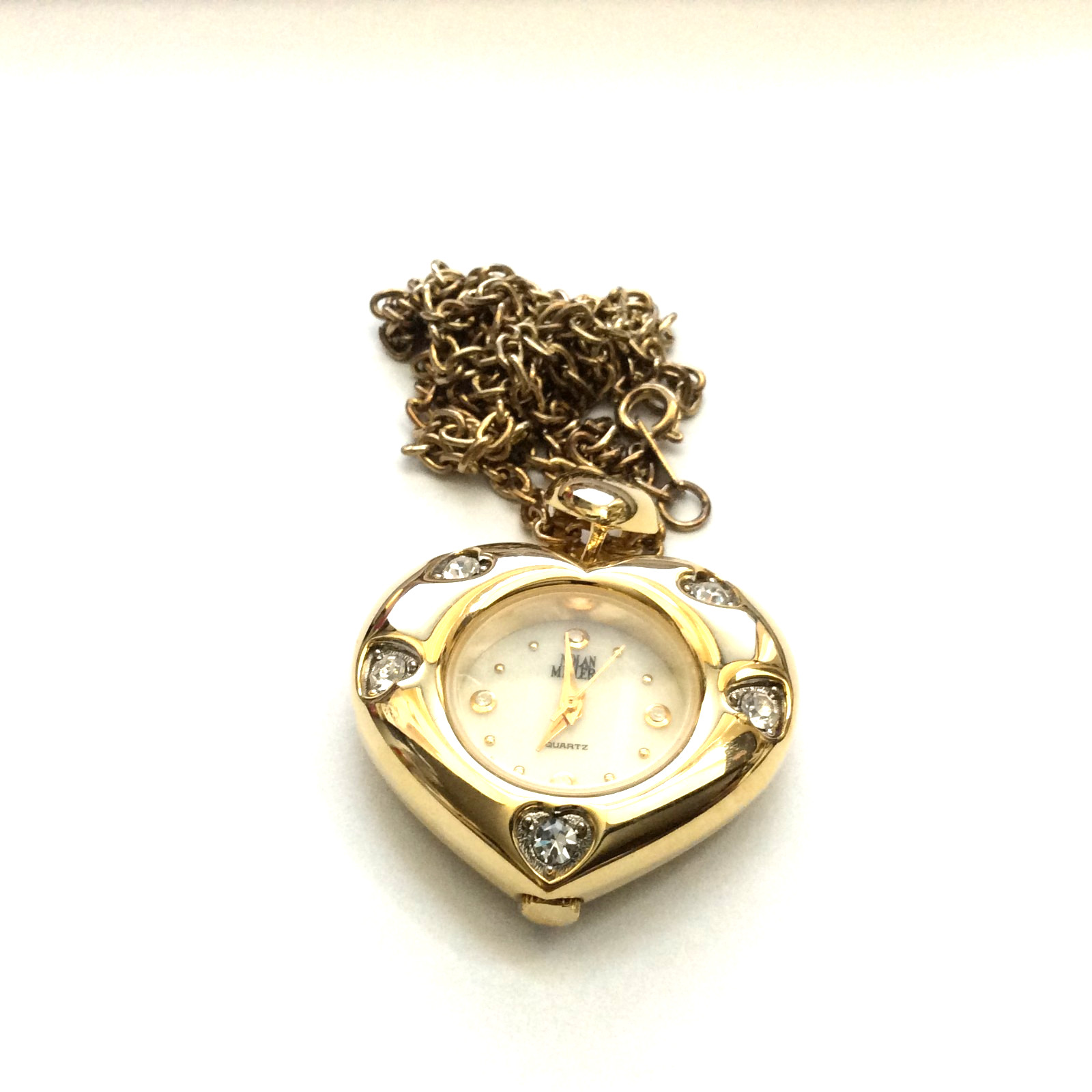 как выглядит Gold Crystal Heart Watch Pendant on Gold Chain Necklace for Women NEW Vintage фото