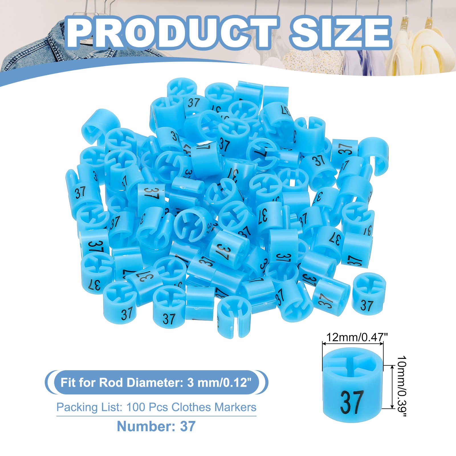 100 Pcs Clothes Hanger Marker Number 37 Tag Fit 3mm Rod Garment Size Tag Blue