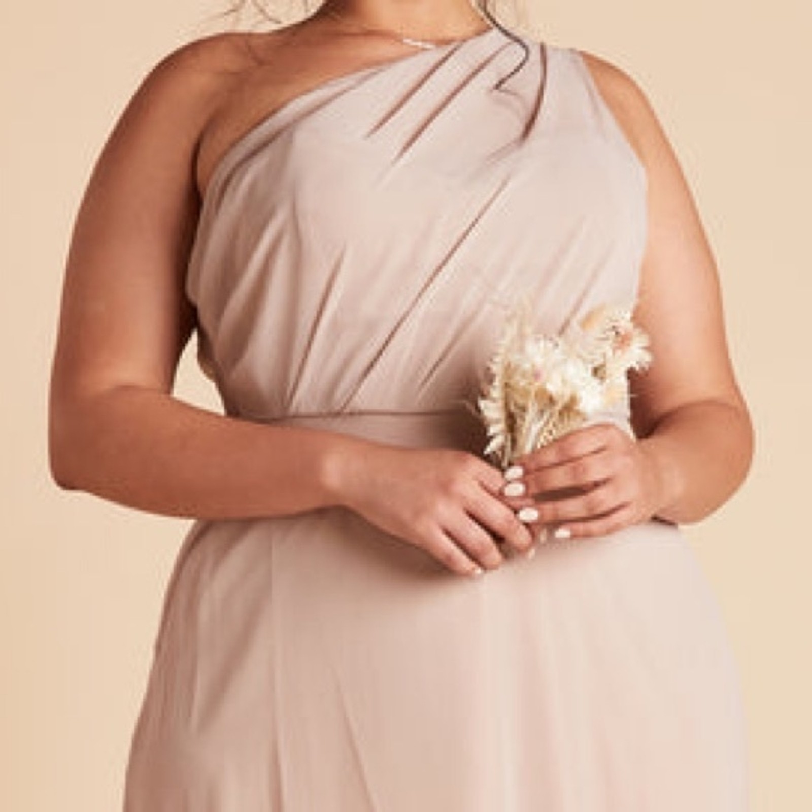 как выглядит NWT Birdy Grey Kira One Shoulder Maxi Bridesmaid Dress Taupe Chiffon Size XXL фото