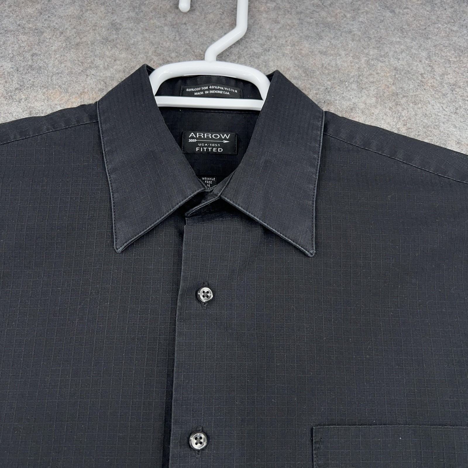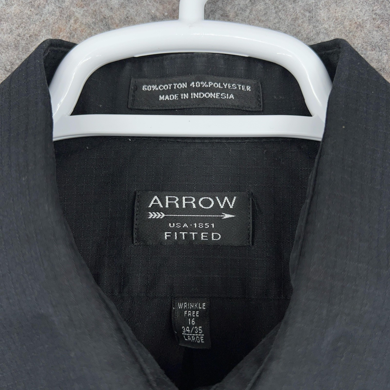 как выглядит Arrow Shirt Mens 16 34/35 Black Check Fitted Wrinkle Free Dress Long Sleeve фото