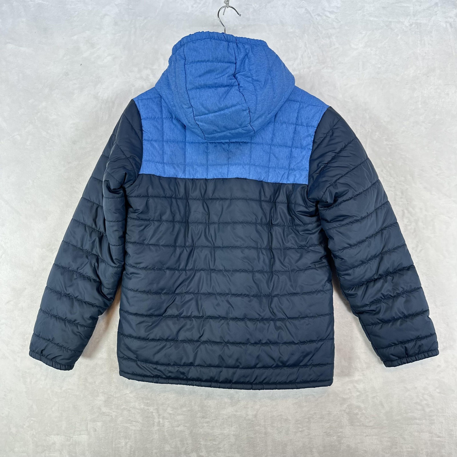 Columbia Jacket Kids L 14/16 Blue Black Hooded Puffer Winter Colorblock Warm