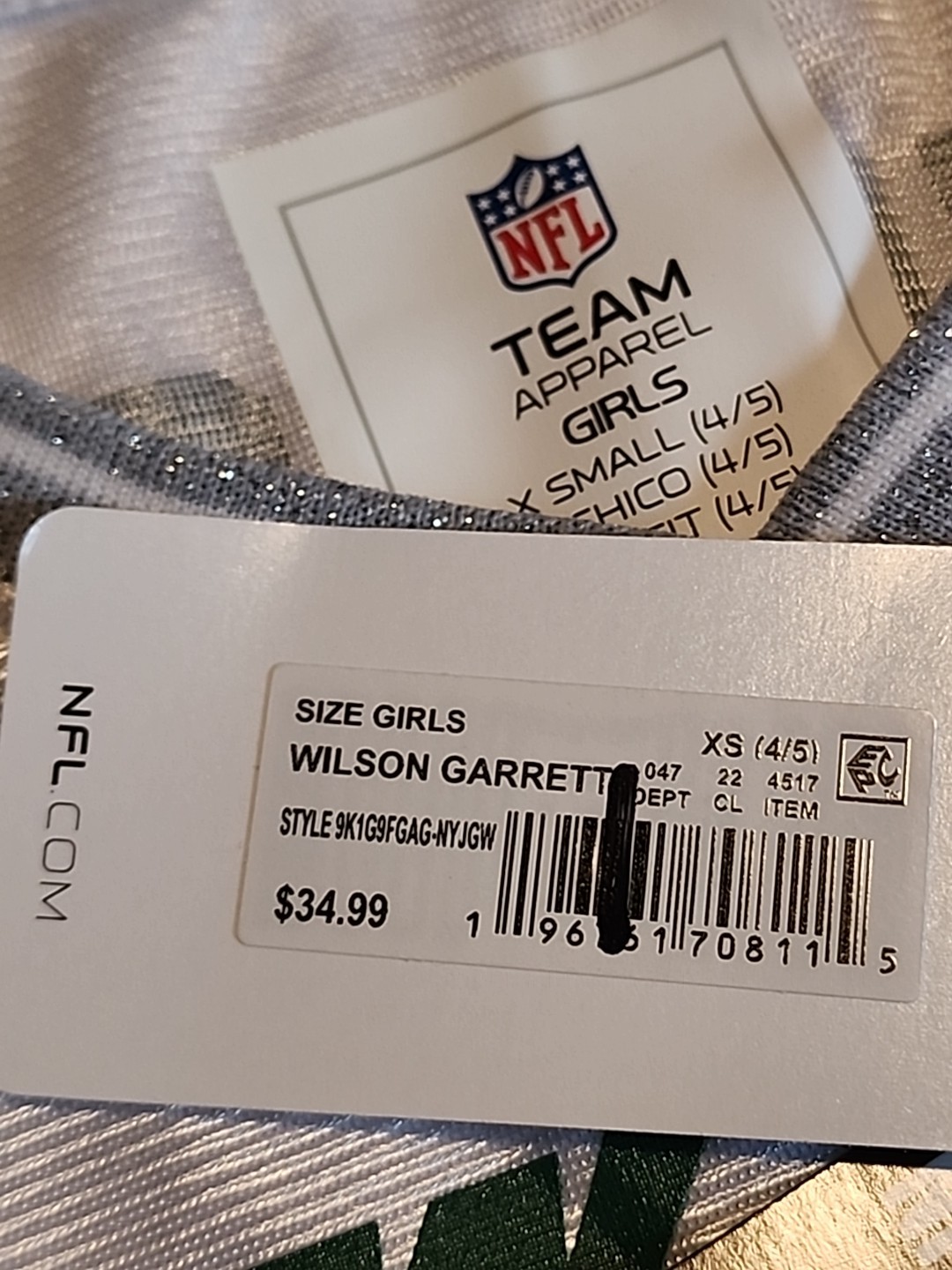как выглядит NFL Youth New York Jets 17 Garrett Wilson Jersey Shirt Girls XS 4/5 - NEW фото