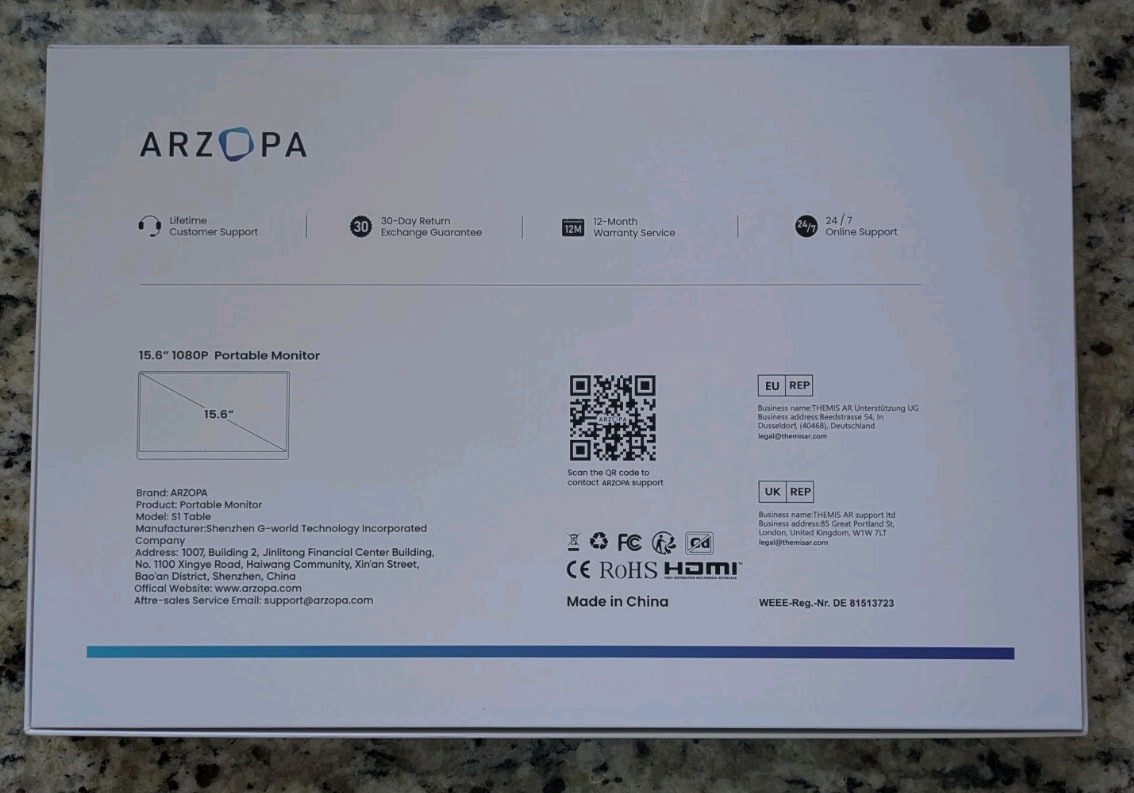 Arzopa 15.6 inches 1080P Portable Monitor New Sealed