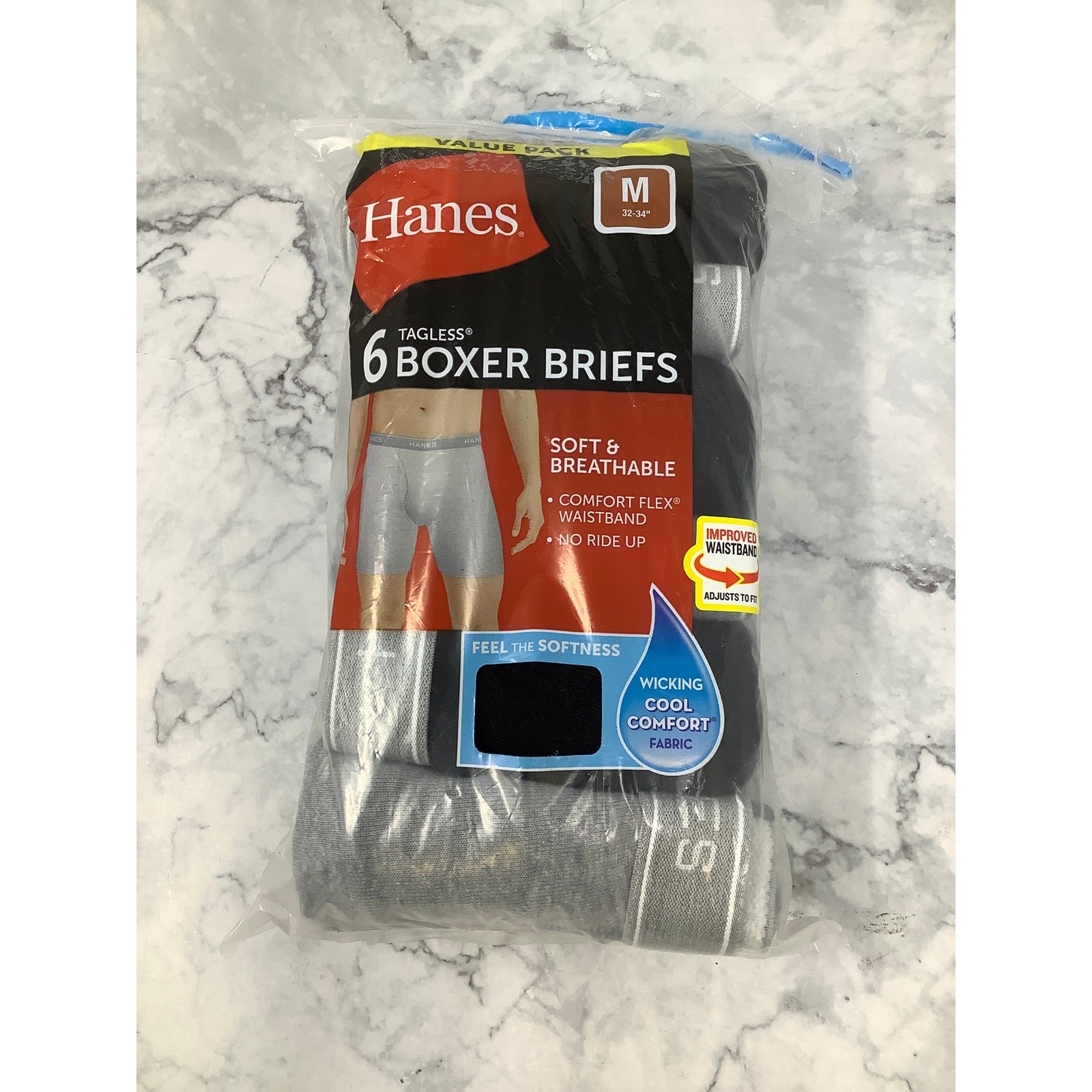 как выглядит Hanes Comfort Flex Mens M 6 Pack Cotton Moisture Wicking Boxer Briefs N2-33 фото