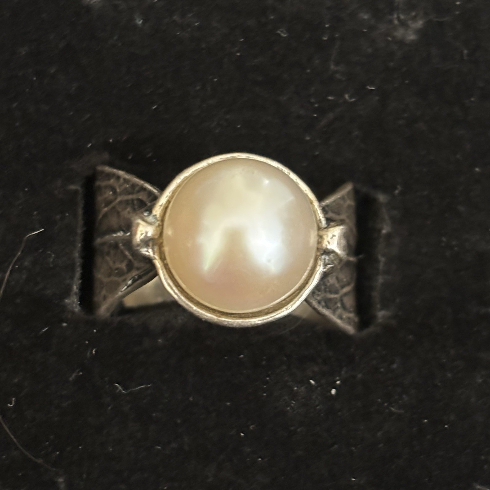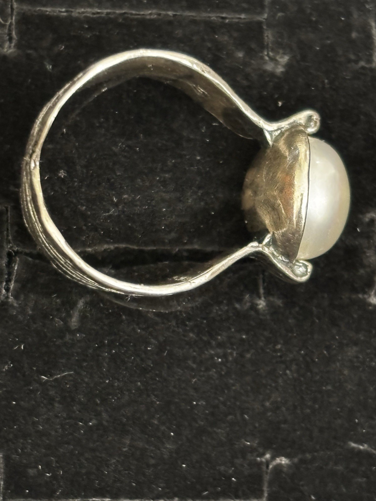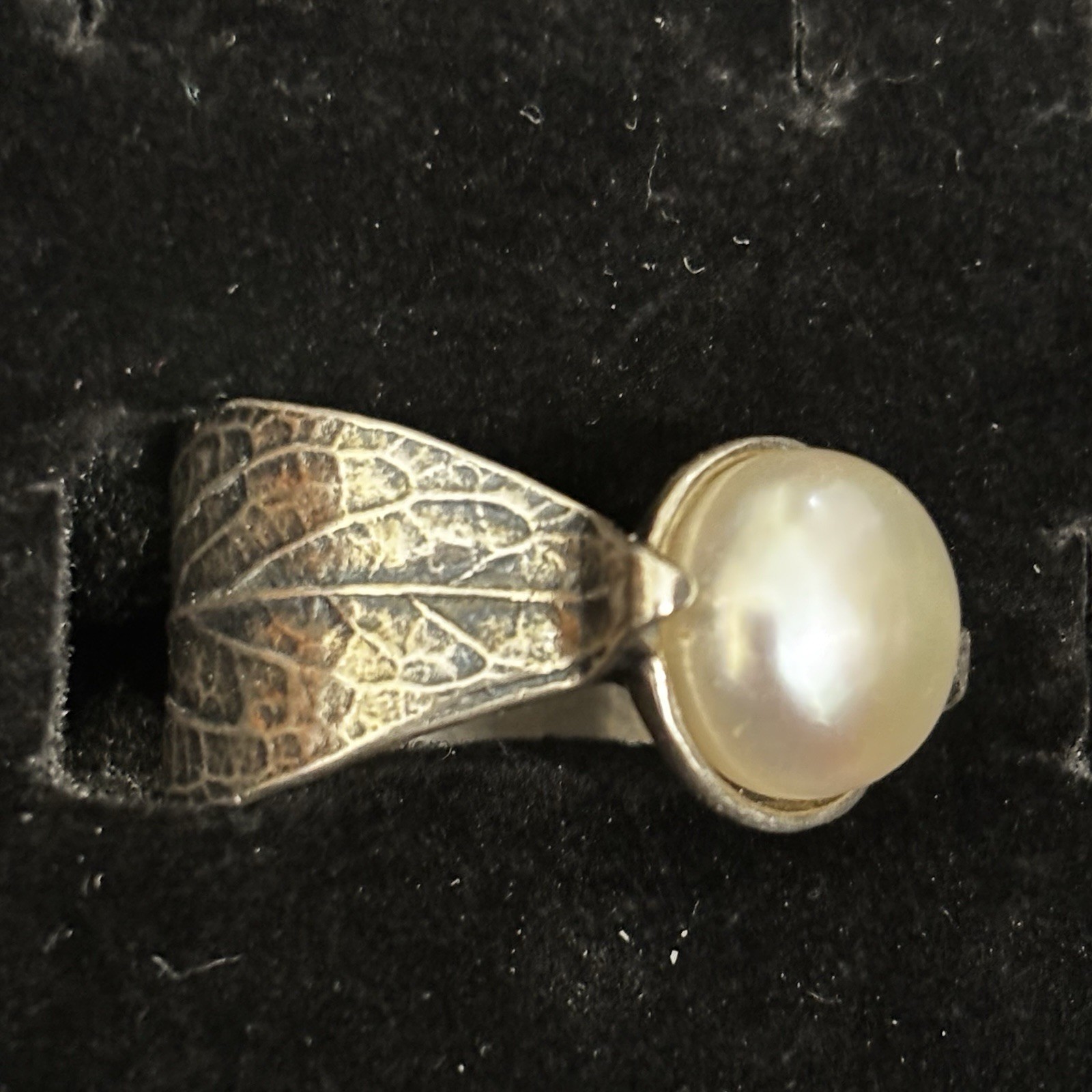 как выглядит Vintage 925 Silver Pearl Leaf Band Design Size 7.25 Ring. Israel Real Pearl. фото