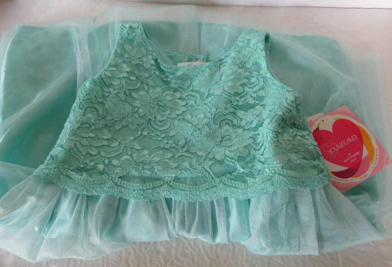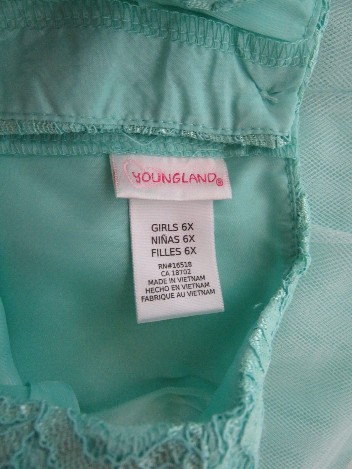Girls Party Fancy Dress Floral Lace Size 6X Aqua Sleeveless Wedding Youngland