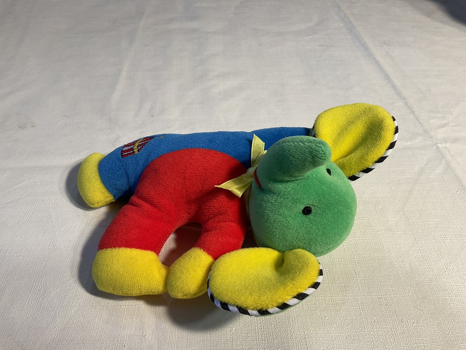 VTG. EDEN PLUSH ELEPHANT RATTLE/LOVEY, BRIGHTLY COLORED, FRESHLY LAUNDERED, HTF