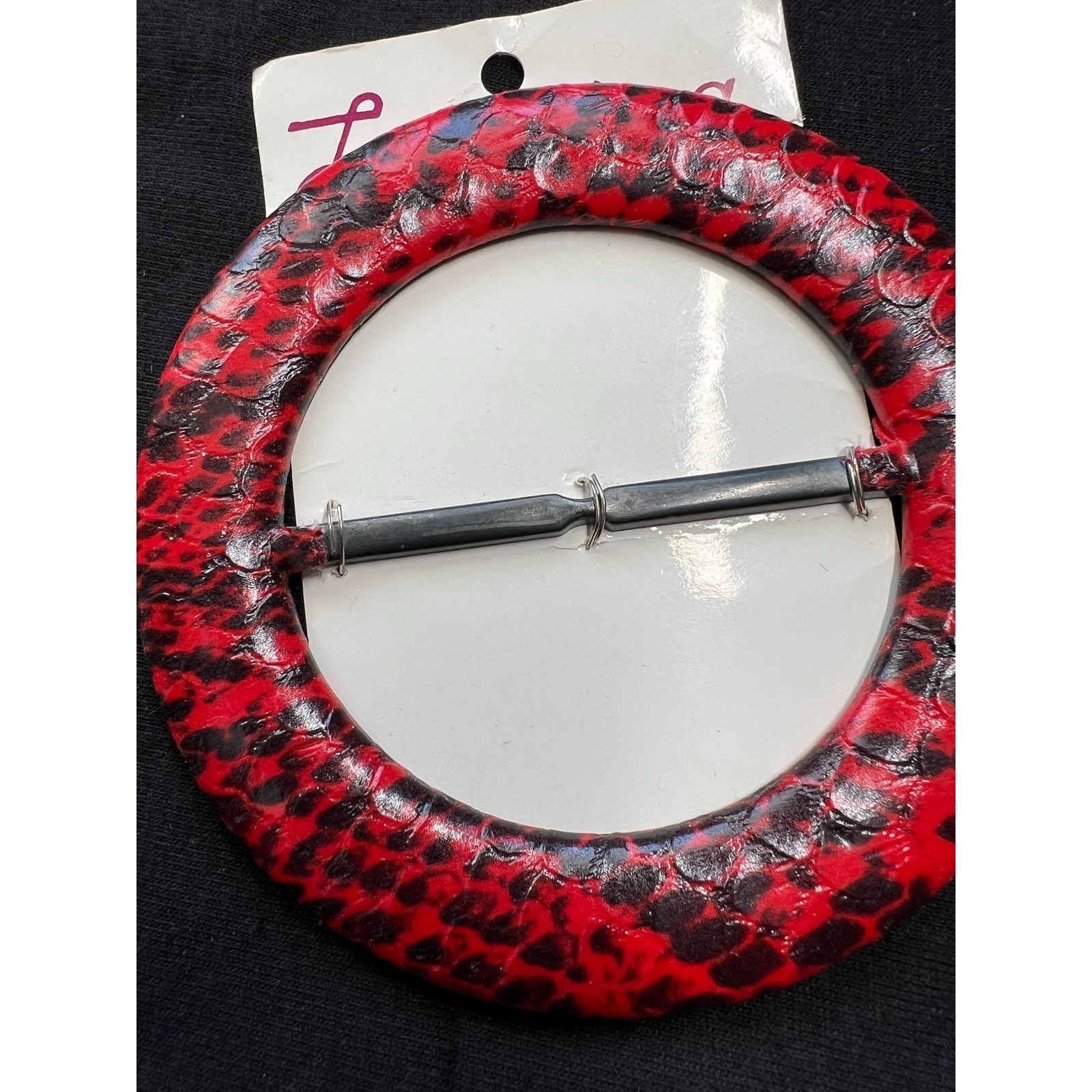Rare Vintage Lansing Vinyl Red and Black Textured Belt Buckle 3.5 quot; on Card