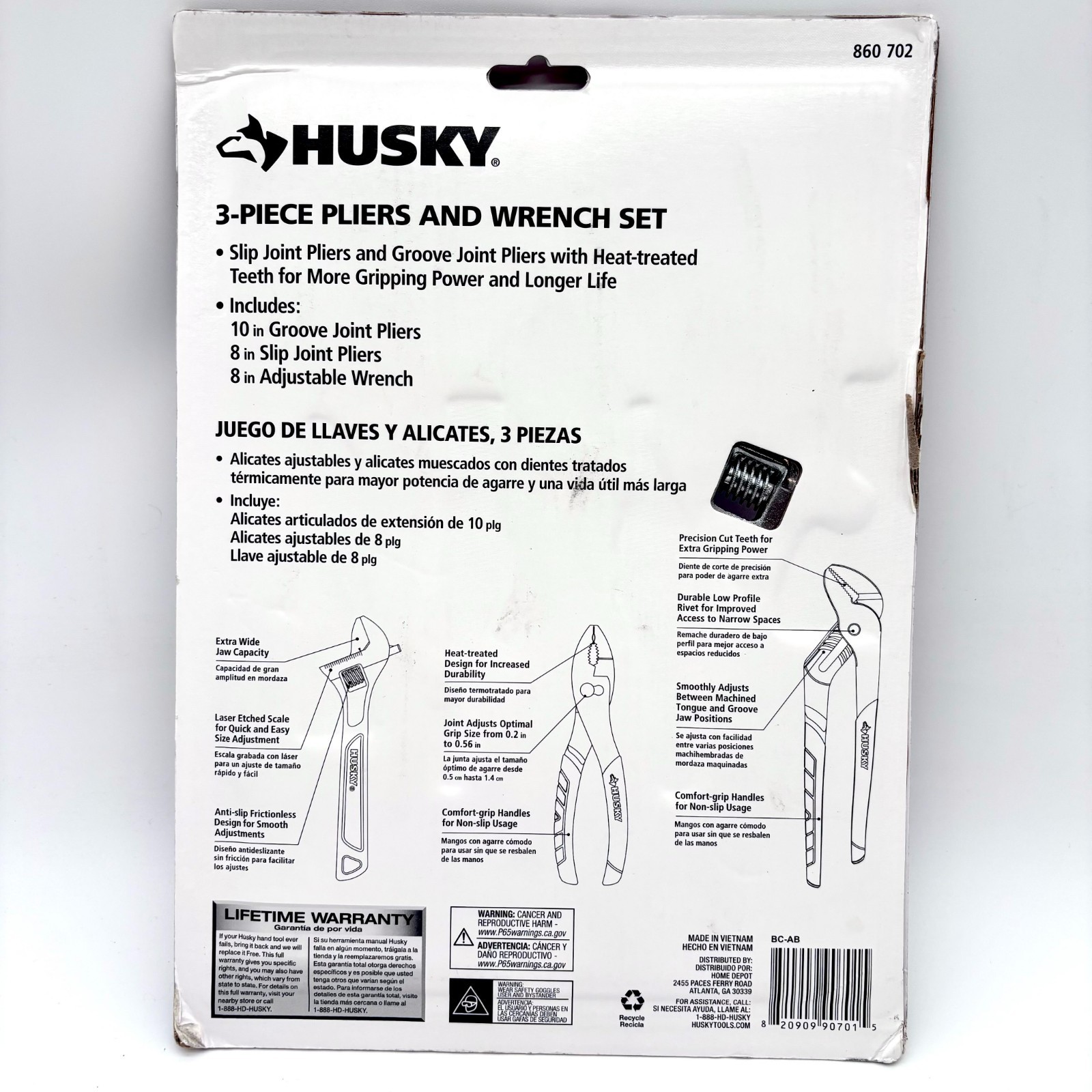 Husky 3 Piece Pliers And Wrench Set - Silver/Black Model Model 860 702