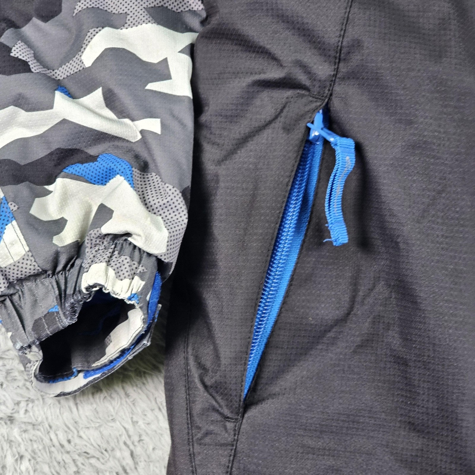Eddie Bauer Ski Jacket Kids 10/12 Gray Blue Camo Hooded Insulated Snow Winter