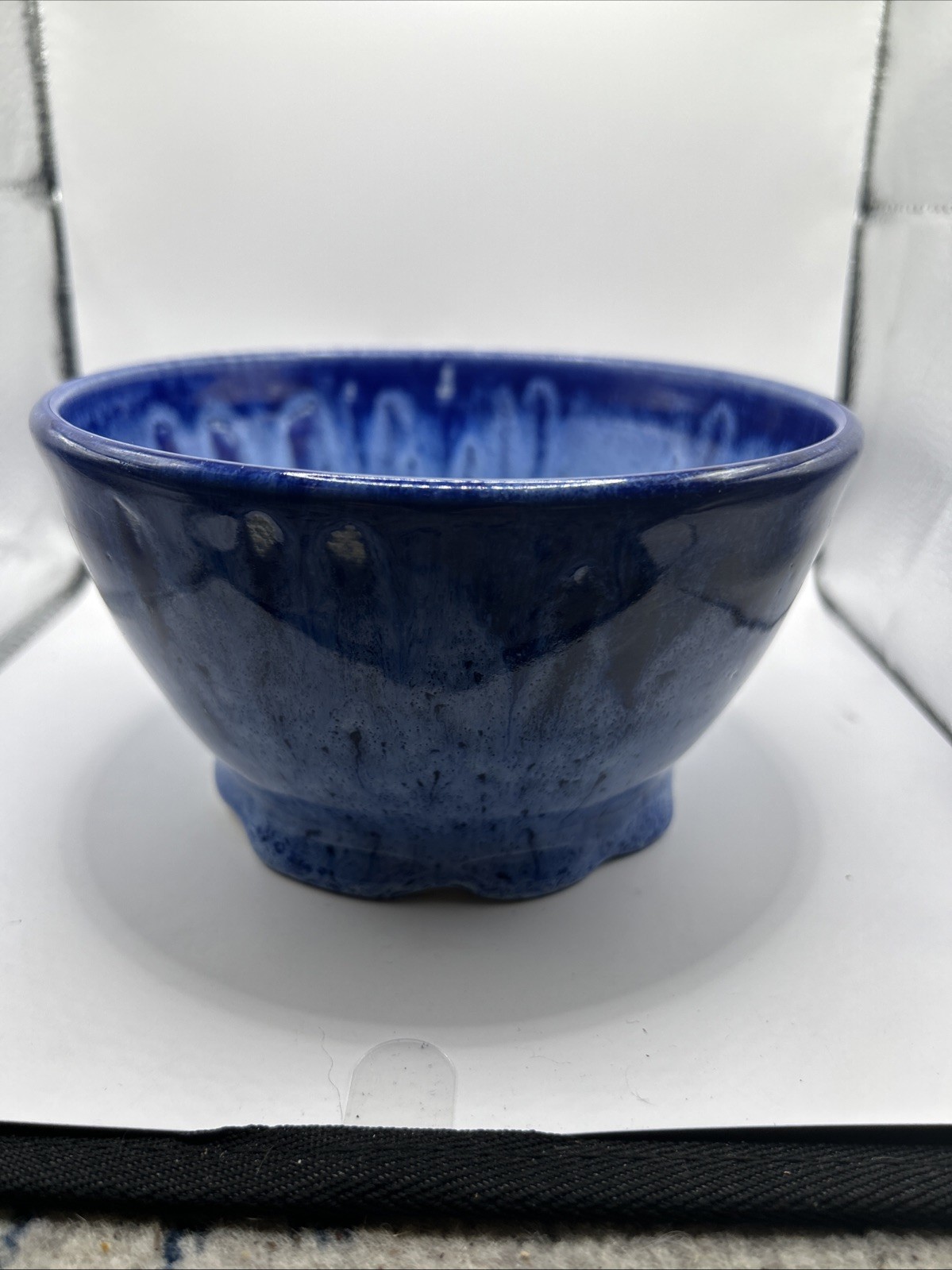HANDMADE/HANDTHROWN STONEWARE POTTERY BOWL BLUE DRIP GLAZE SIGNED Melanie W BSAS