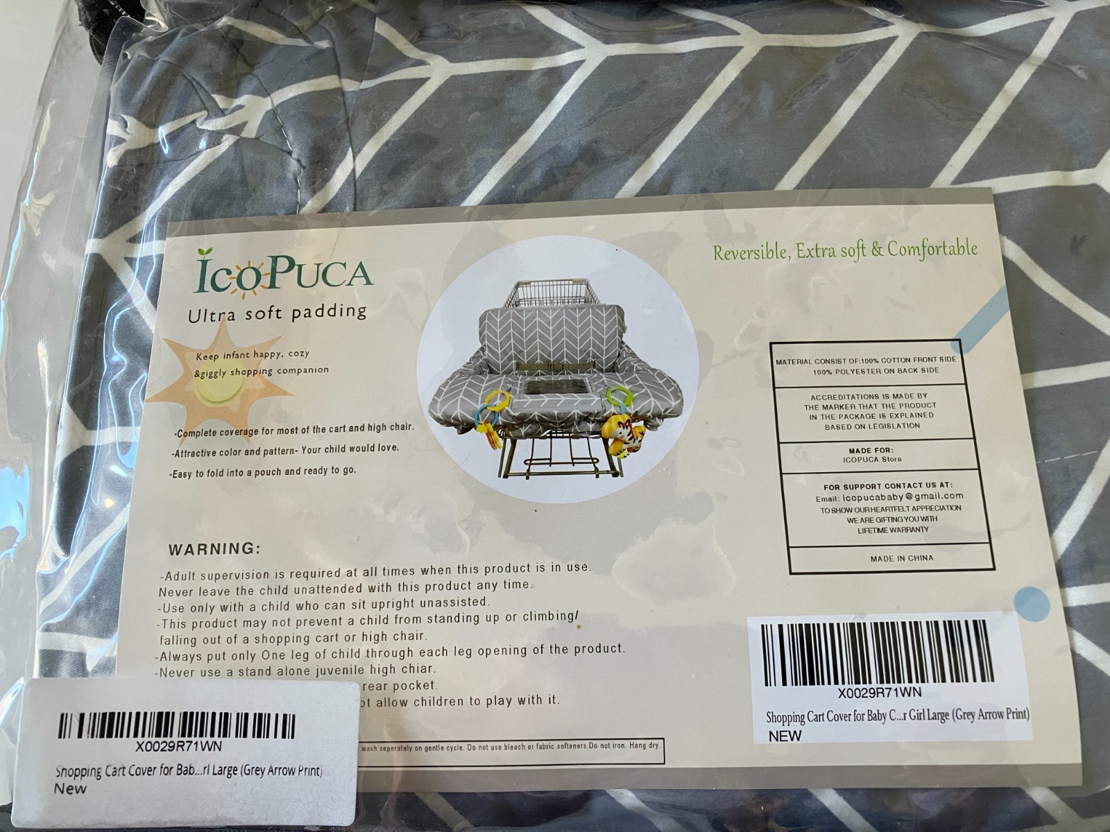 как выглядит IcoPuca Ultra Soft Padding Shopping Cart Cover Gray White New фото