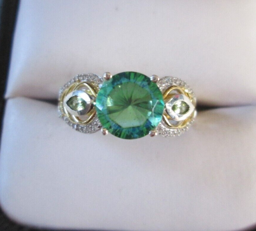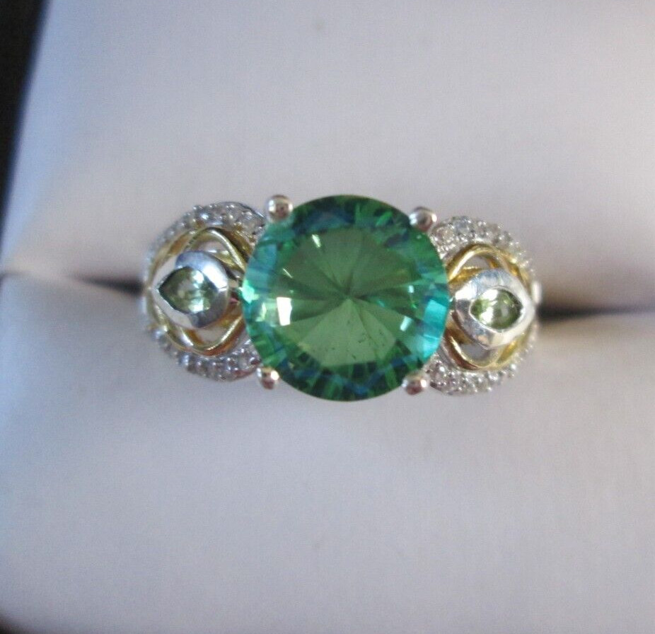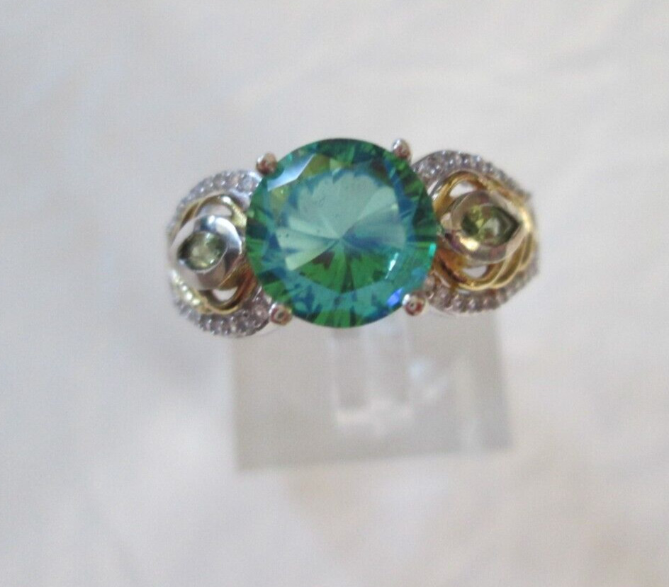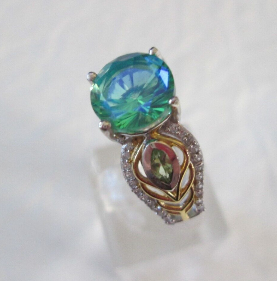 Peacock Quartz Multi Gems 18k Vermeil YG and Rhodium over Sterling Ring Sz 10