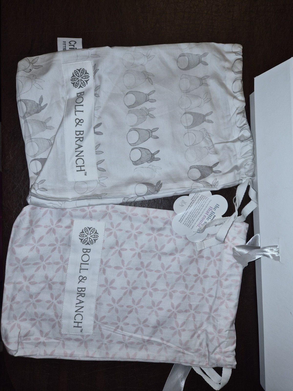 как выглядит Boll Branch Baby Set Of 2 Fitted Crib Sheets White gray Bunny pink Floral фото