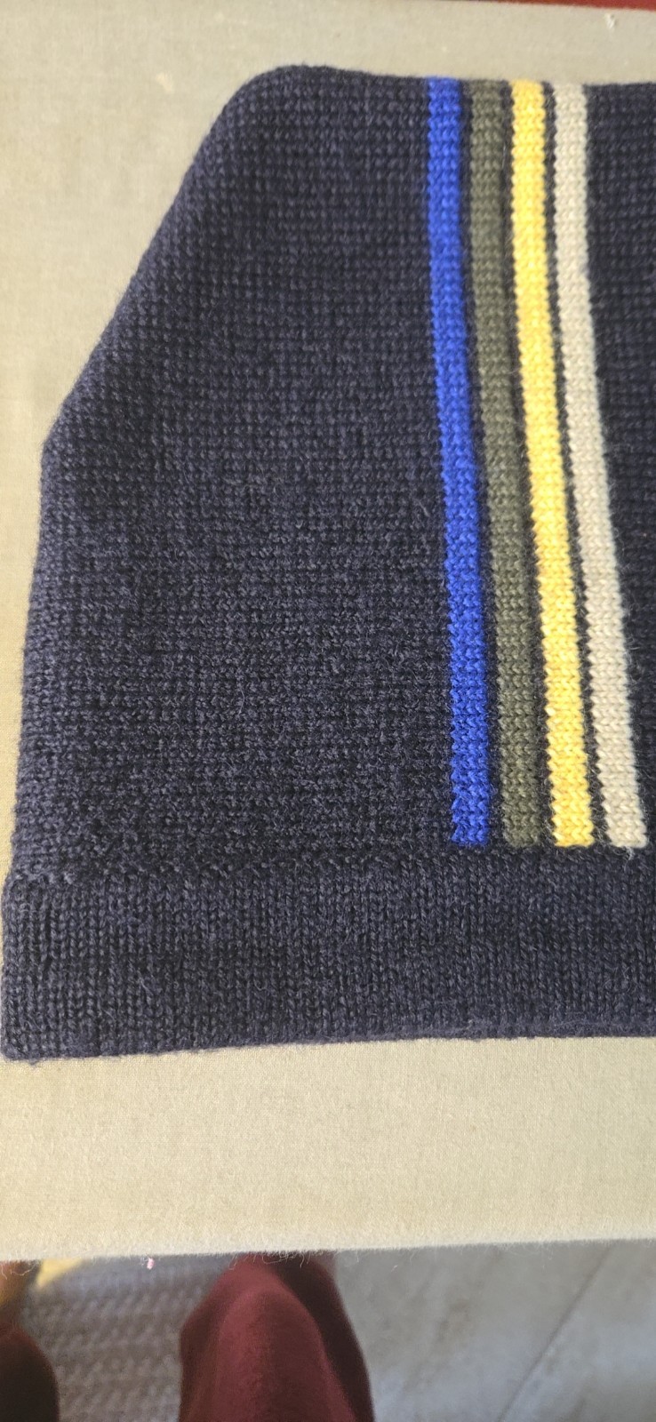 Lands End Wool Beanie Hat Navy Striped Winter Ski Skull Cap Size M