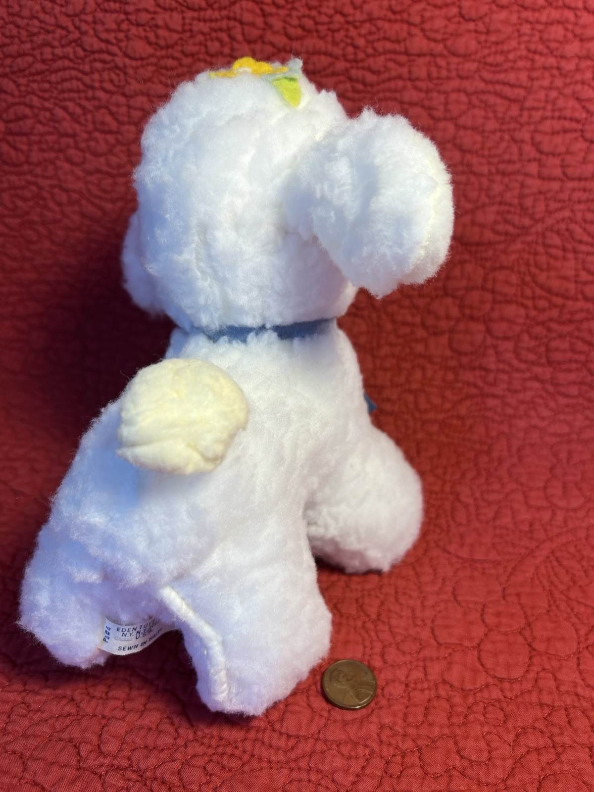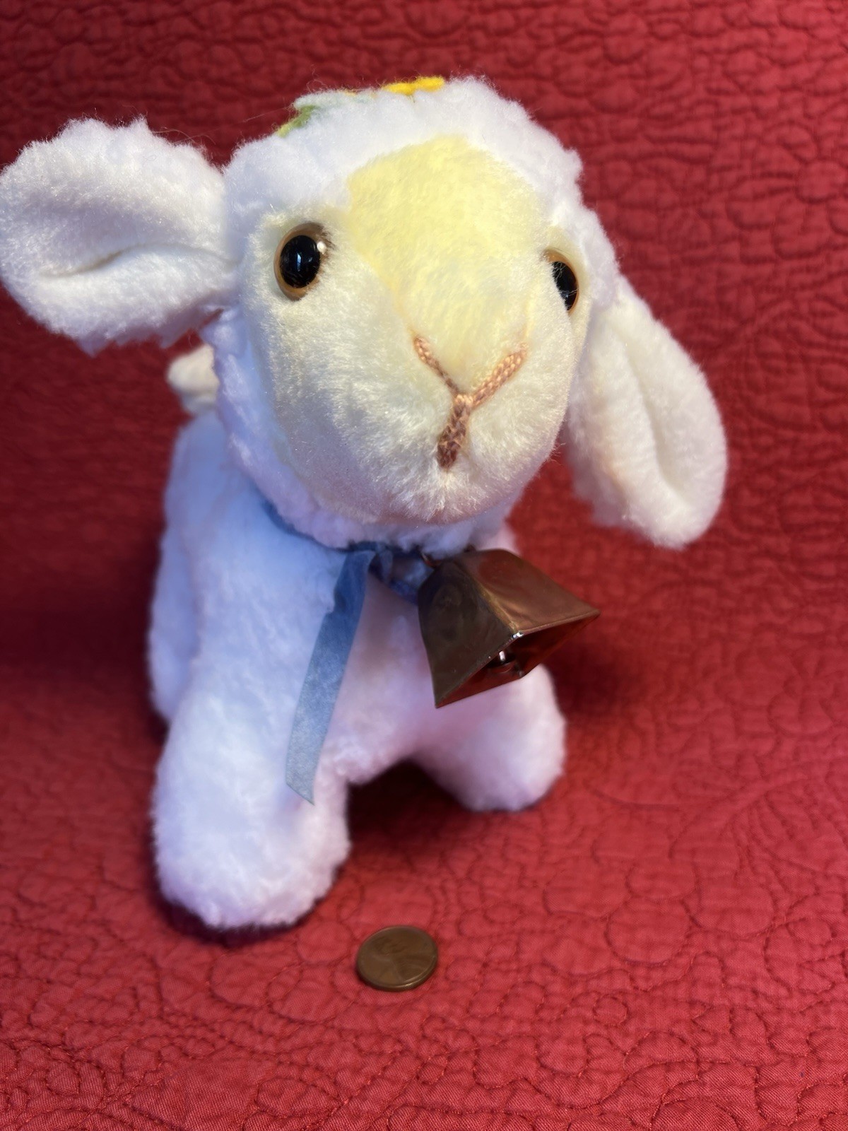 Vintage 8 Eden White Lamb W/ Bell Cream Face Felt Flowers Plush Stuffed
