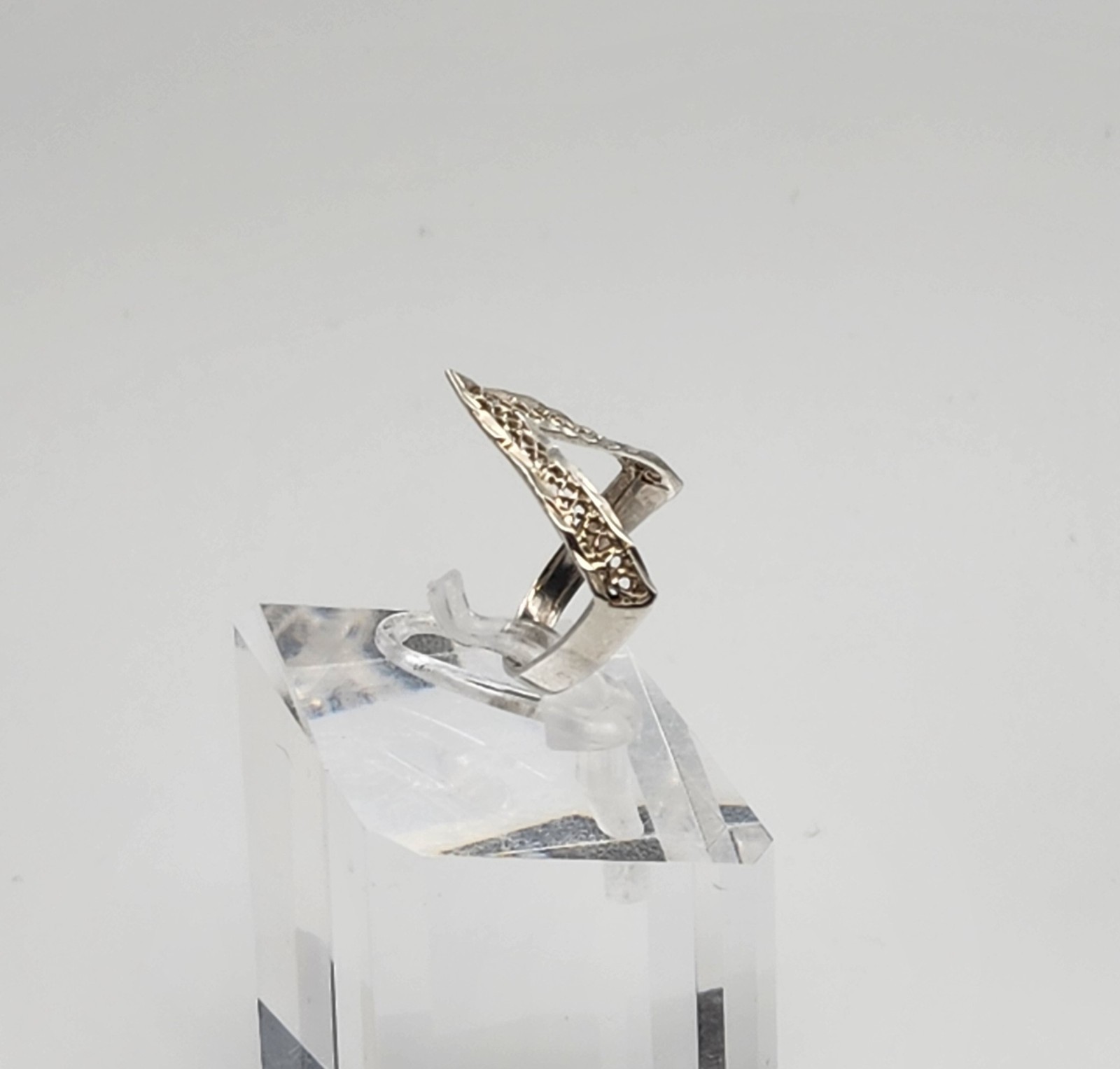 как выглядит Vintage Sterling Silver V Shape Filigree Ring Size 6.25 фото