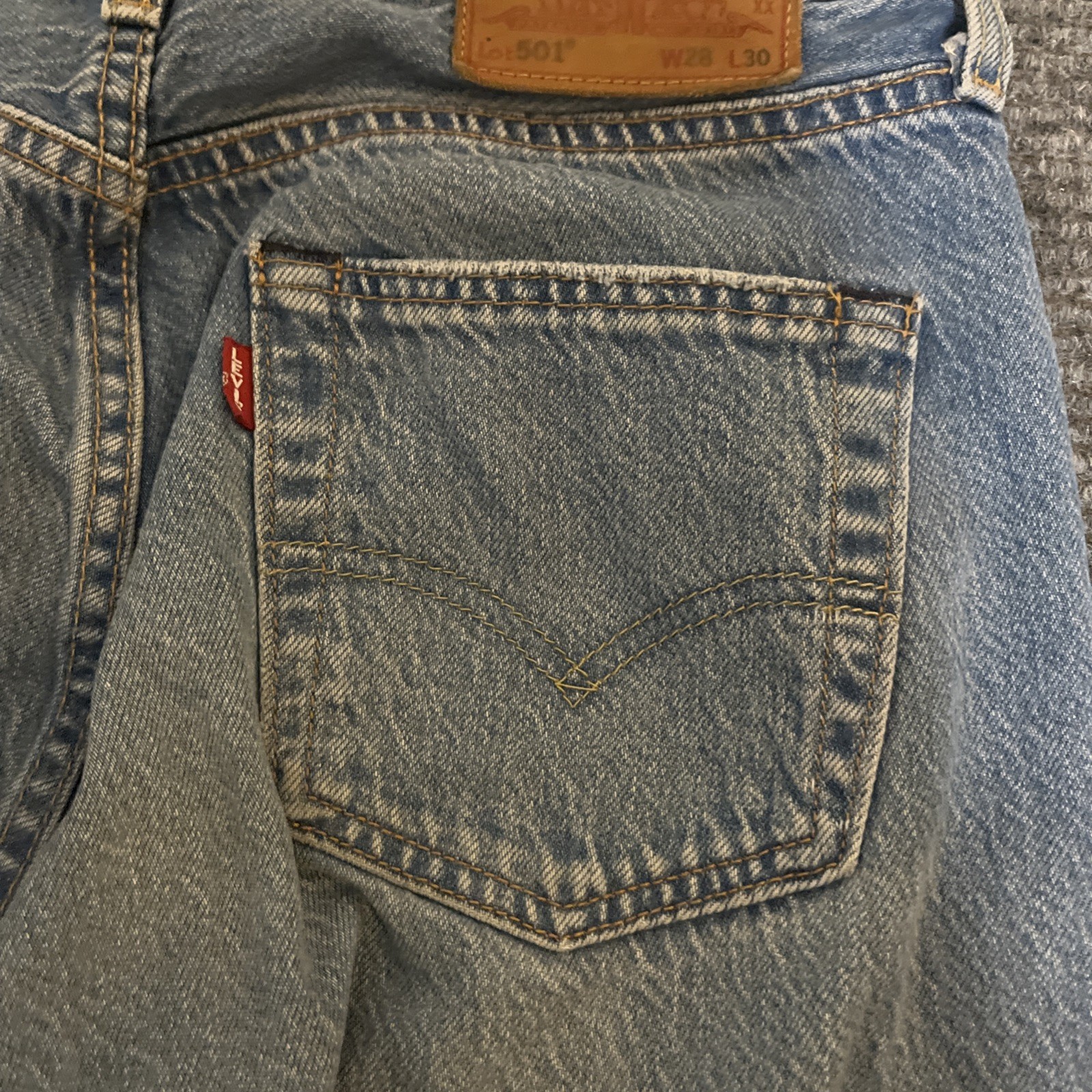 как выглядит VINTAGE Levis 501 Big E Jeans Mens W28 L30 Blue Denim Button Fly Selvedge USA фото