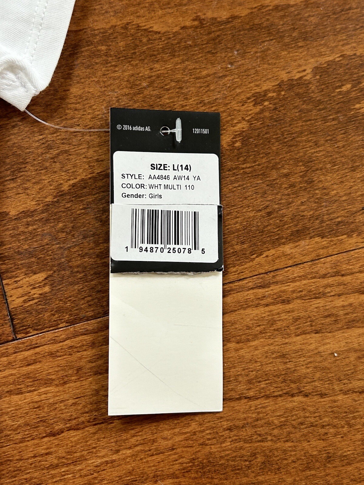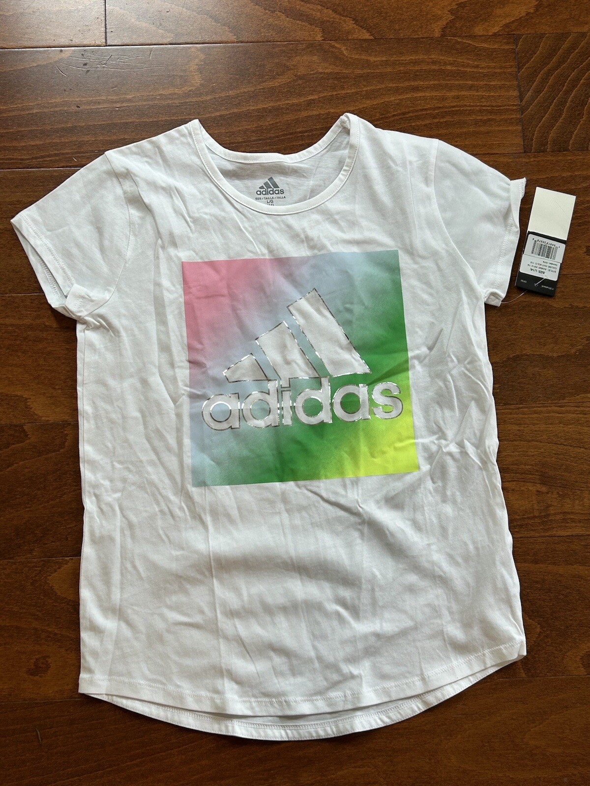 adidas Girls' Short Sleeve Cotton Scoop Neck Tee T-Shirt Rainbow NWT Size L 14