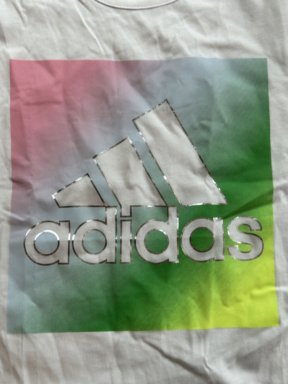 как выглядит adidas Girls Short Sleeve Cotton Scoop Neck Tee T-Shirt Rainbow NWT Size L 14 фото