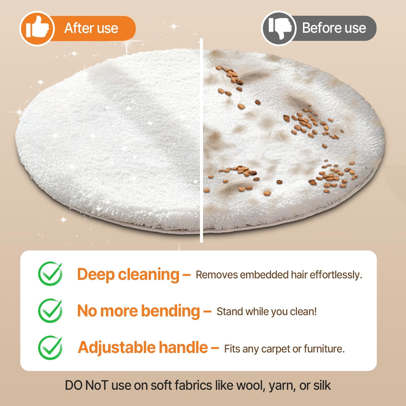 2 in 1 Carpet Rake for Pet Hair Removal, Reusable Pet Hair Remover, 54