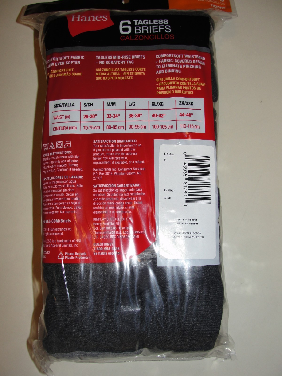 как выглядит 6 Pair Mens Hanes Dark Gray Tagless Mid-Rise Briefs - Size XL 40-42 фото