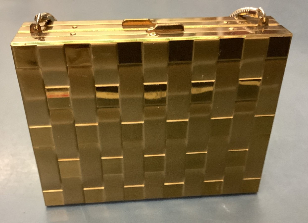 как выглядит Vtg Womans Evening Purse Makeup Carrying Case Gilt MCM ds17 фото