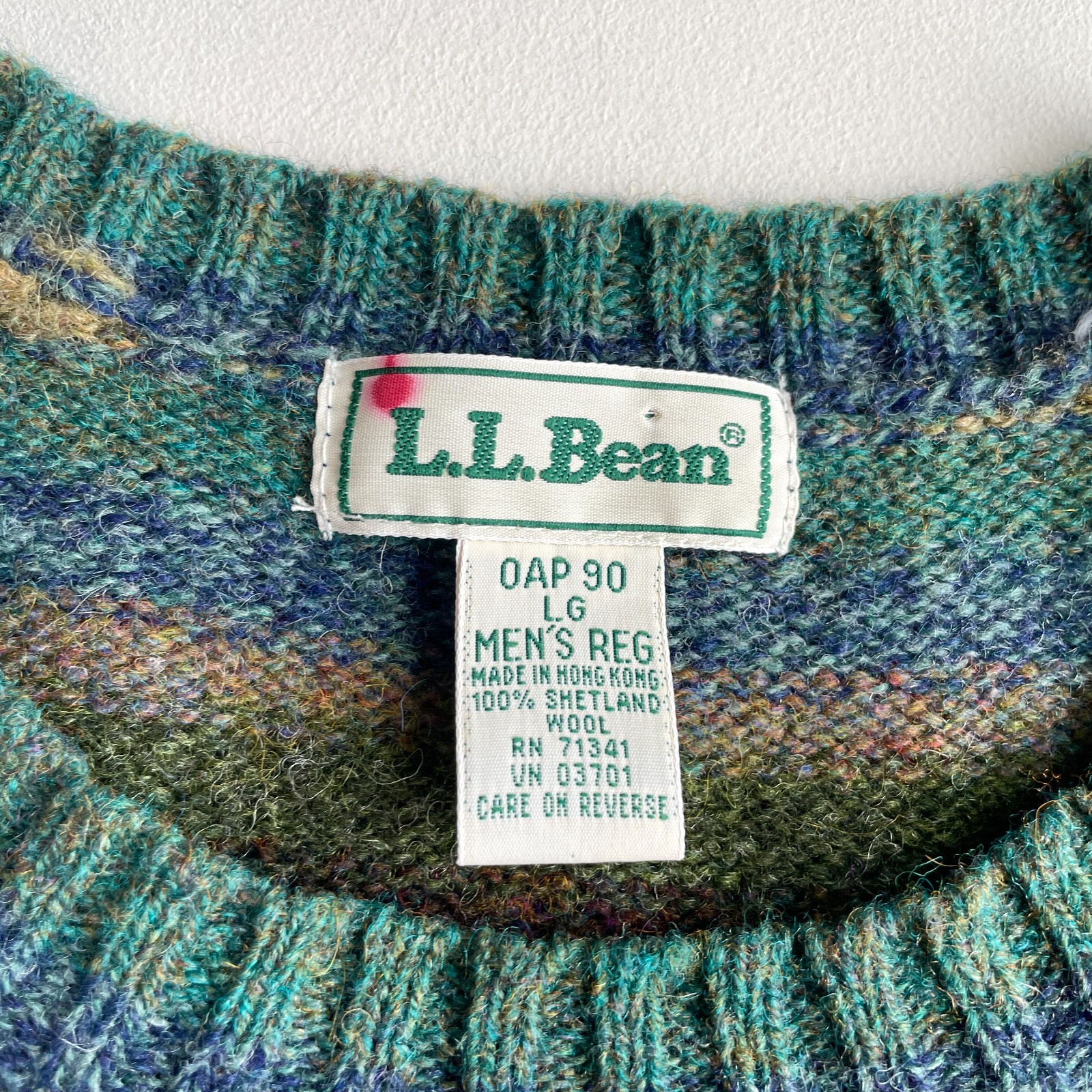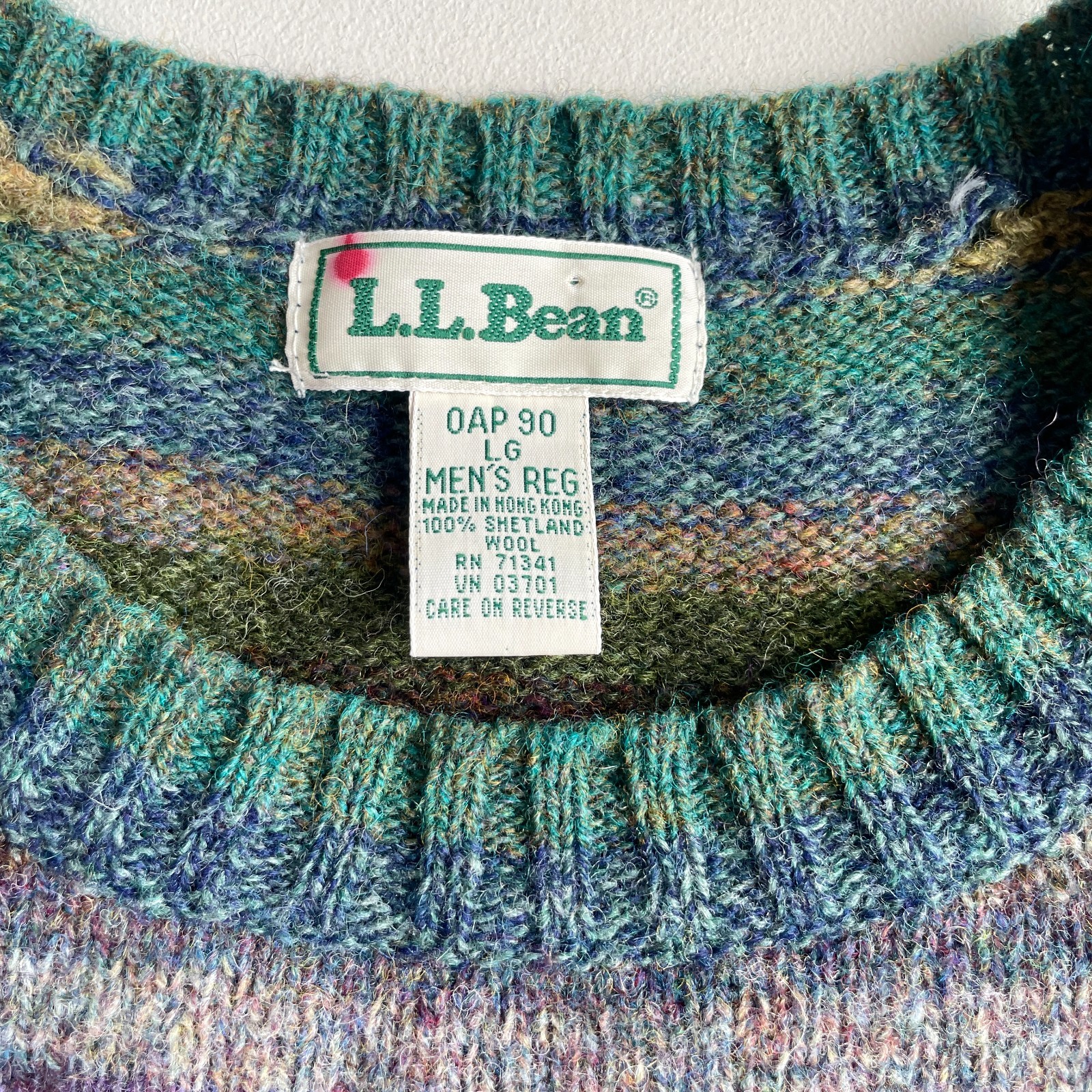 VNTG LL Bean L Shetland Wool Striped Multi-Color Sweater