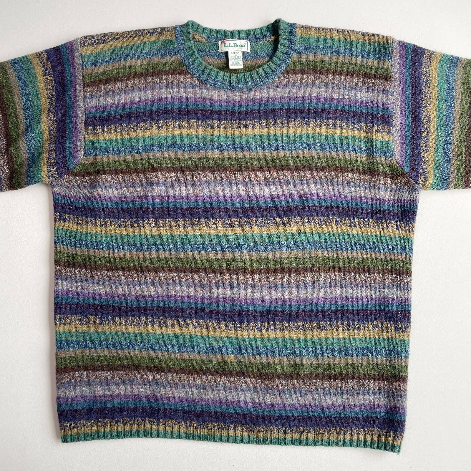 как выглядит VNTG LL Bean L Shetland Wool Striped Multi-Color Sweater фото