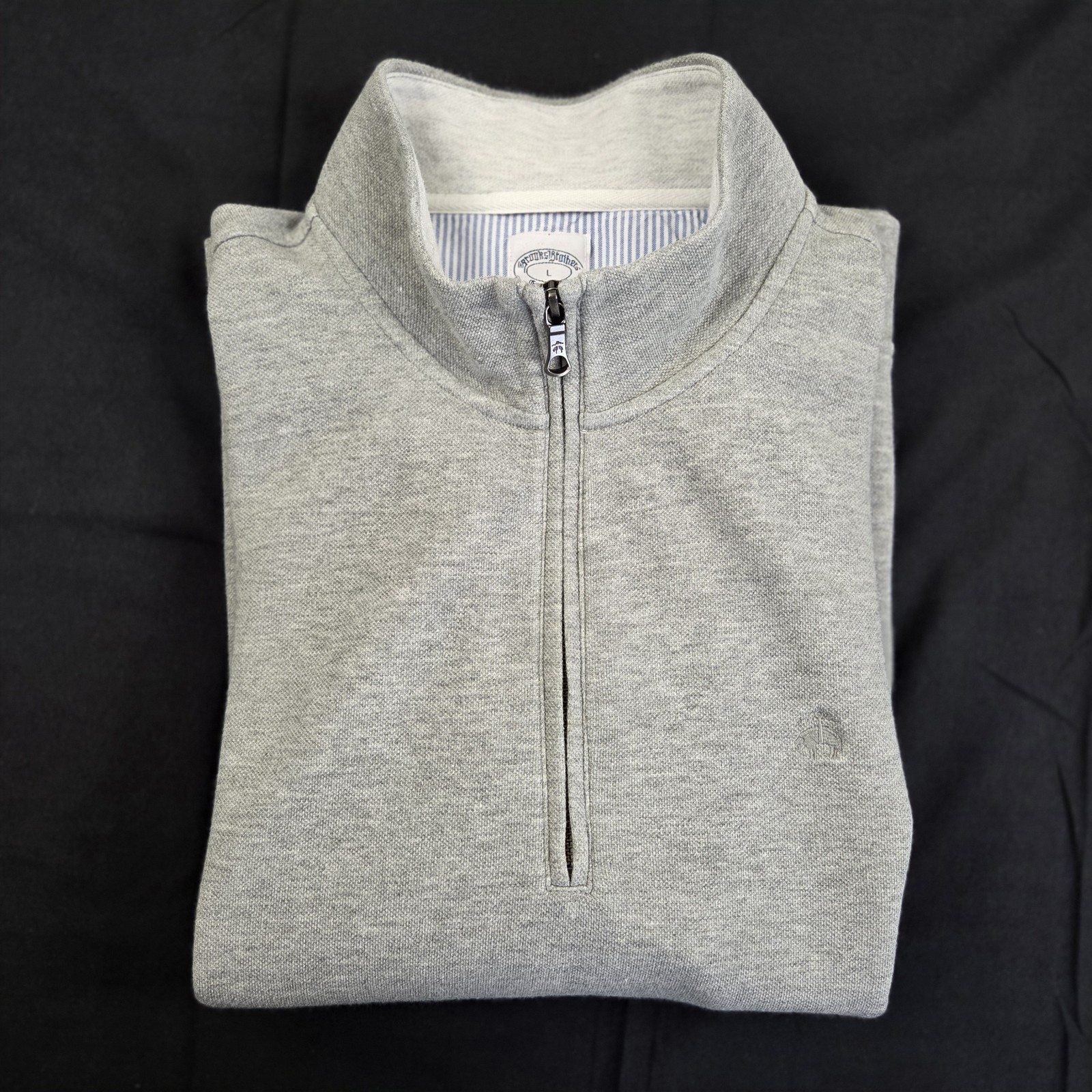Brooks Brothers Sweater Mens Large Heather Grey 1/4 Zip Pullover Solid Logo