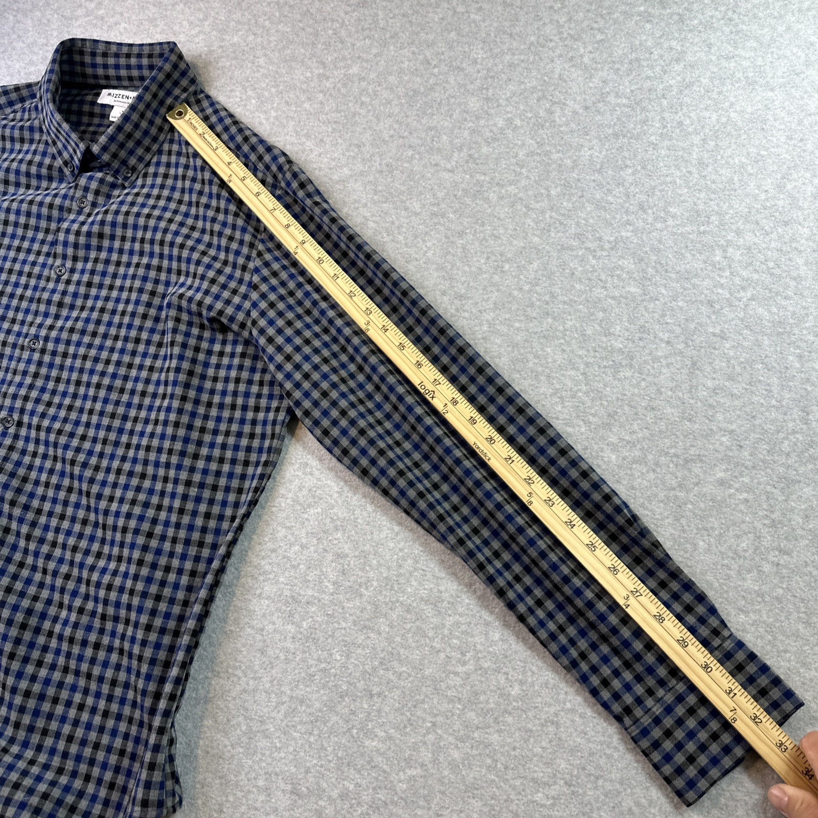 как выглядит Mizzen Main Shirt Mens XL Trim Fit Gray Blue Gingham Check Long Sleeve фото