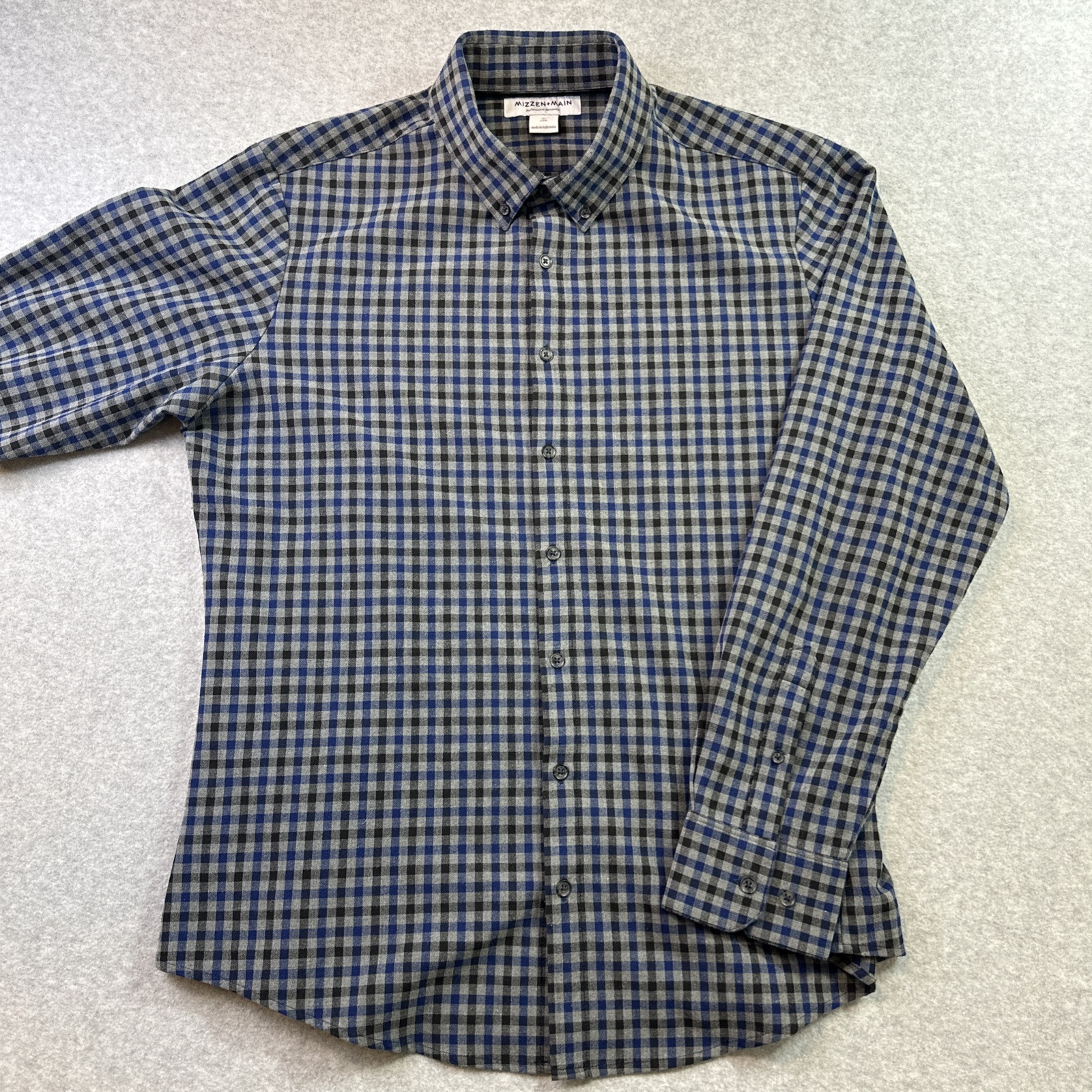 Mizzen Main Shirt Mens XL Trim Fit Gray Blue Gingham Check Long Sleeve