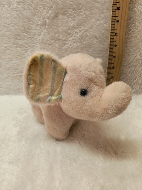 как выглядит Vintage Fan Fare Small Pink Plush Wind Up Musical Head Moves 7" Elephant фото