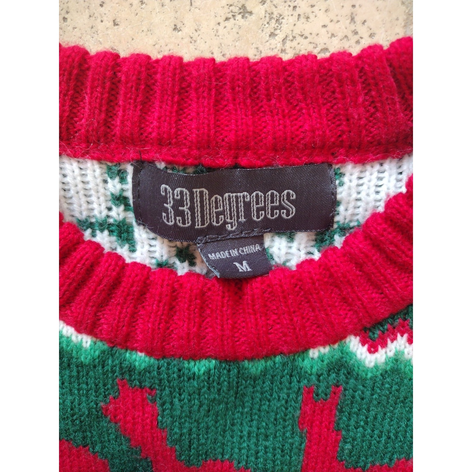как выглядит 33 Degrees Christmas Sweater Womans M Red Green Llama with Striped Scarf Crochet фото